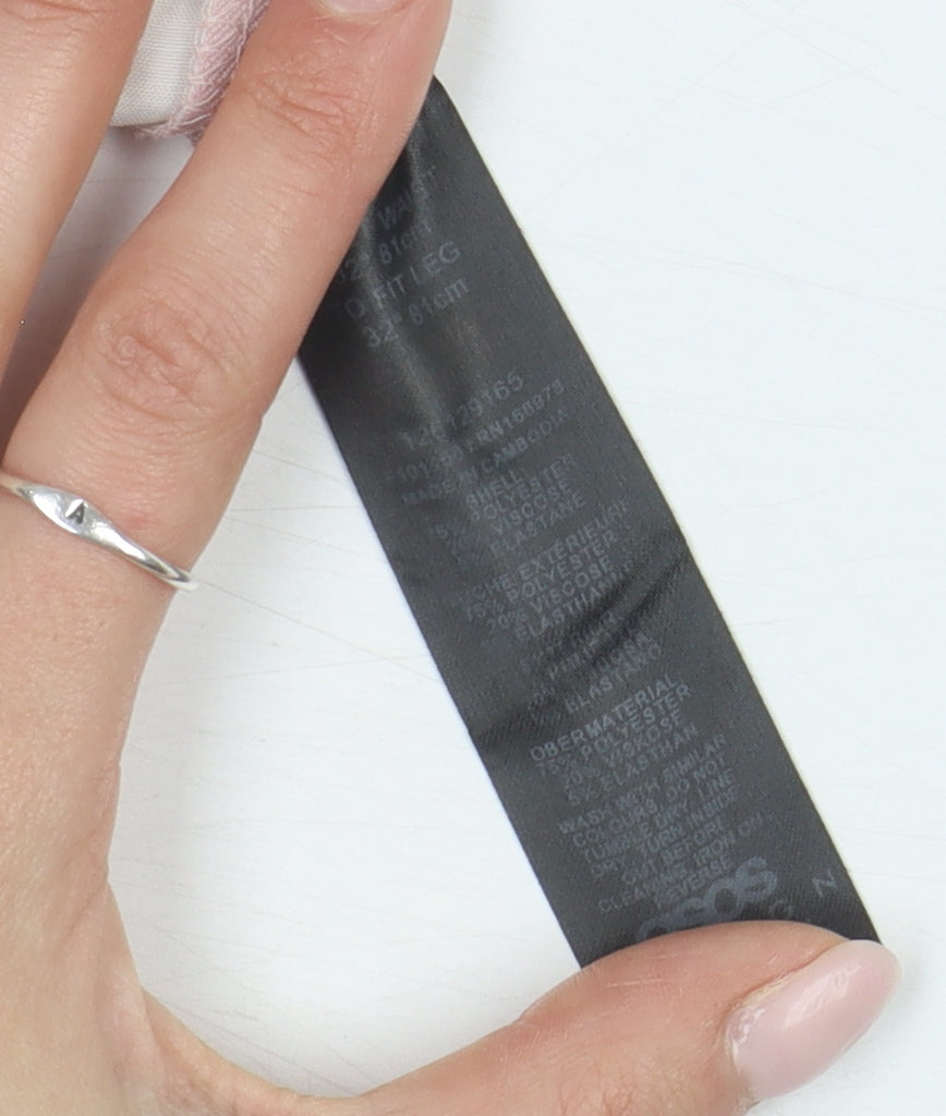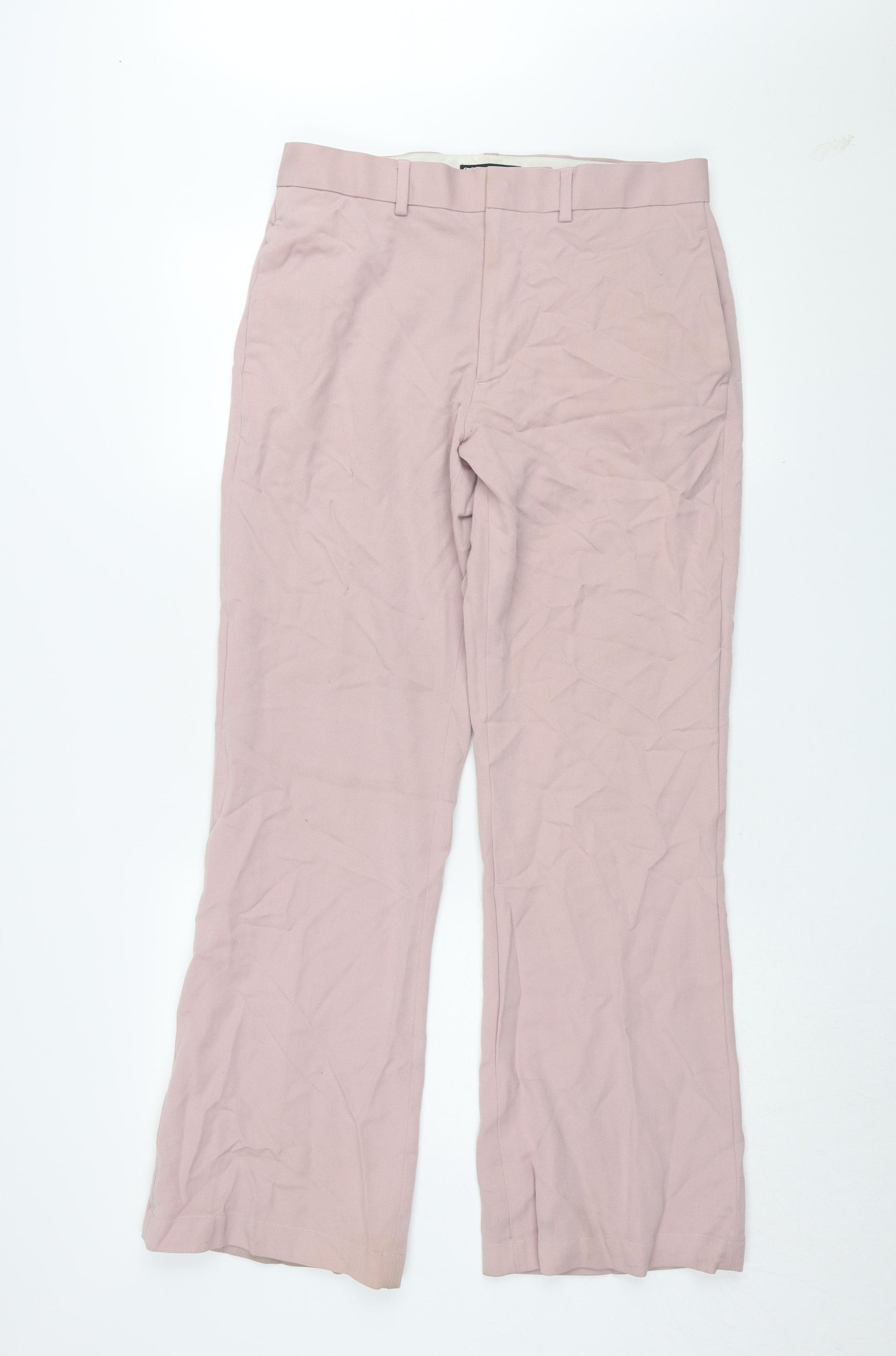 Elevate your everyday wardrobe with these chic ASOS DESIGN women's trousers. Crafted in a sophisticated pink hue, these trousers feature a stylish flared leg that exudes elegance and comfort. The blend of polyester, viscose, and elastane ensures a soft, flexible fit that moves with you, making them ideal for a variety of occasions. With a regular fit and classic flat front, these trousers are perfect for casual outings or dressing up for an evening out. The zip closure adds a touch of practicality and ease. Designed for the modern woman, these trousers offer both style and adaptability, promising to be a versatile addition to your wardrobe. Despite being pre-loved, they maintain an excellent condition, with only minimal signs of wear such as a slightly wrinkled fabric. A size medium with an inside leg measuring 81 cm and a waist size of 81 cm, these trousers provide a comfortable fit while flattering your figure. Pair them with your favourite tops to create effortlessly chic looks that are both timeless and contemporary.