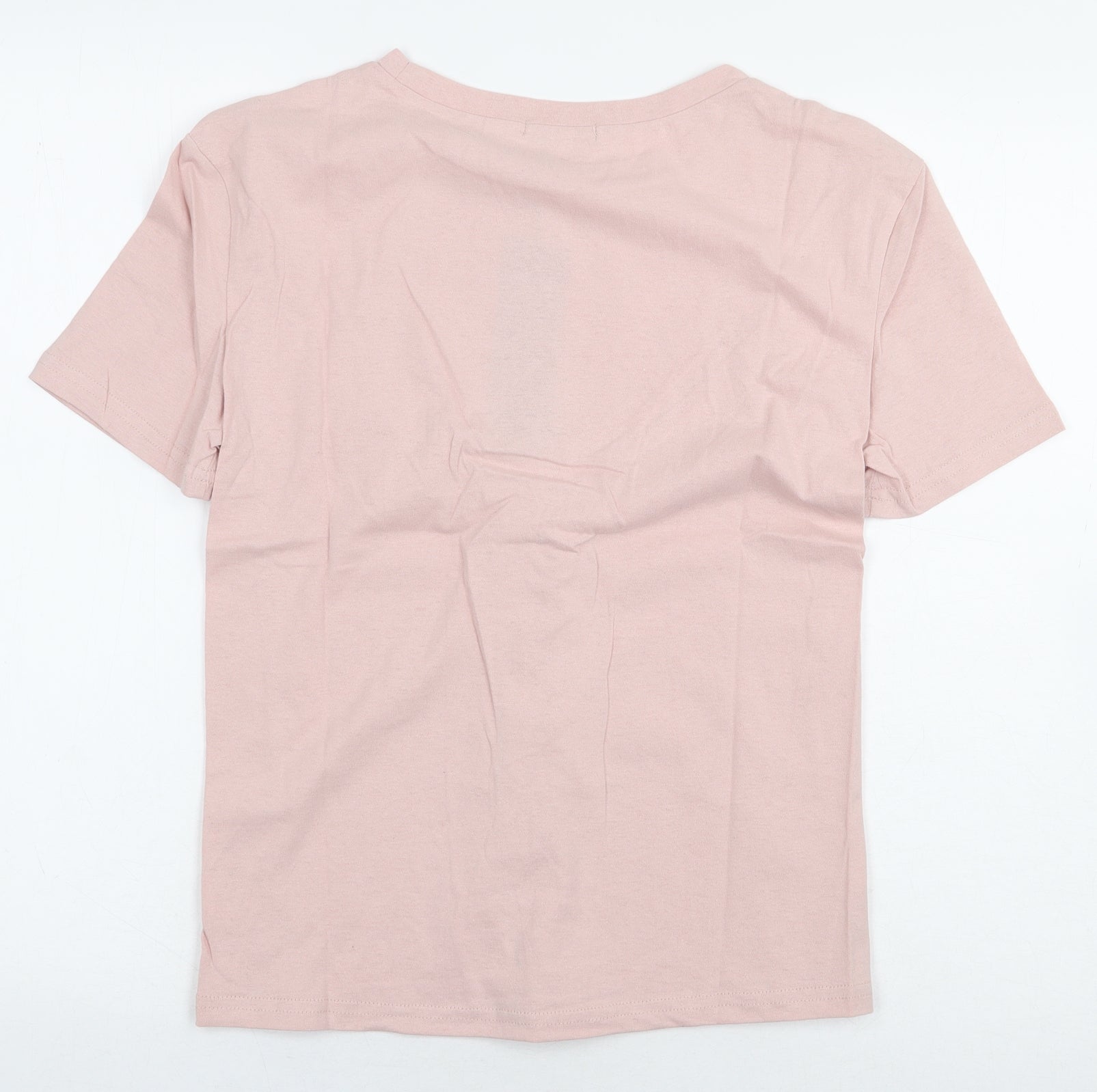 Womens Pink 100% Cotton Basic T-Shirt Size S Round Neck - Lace Up Detail