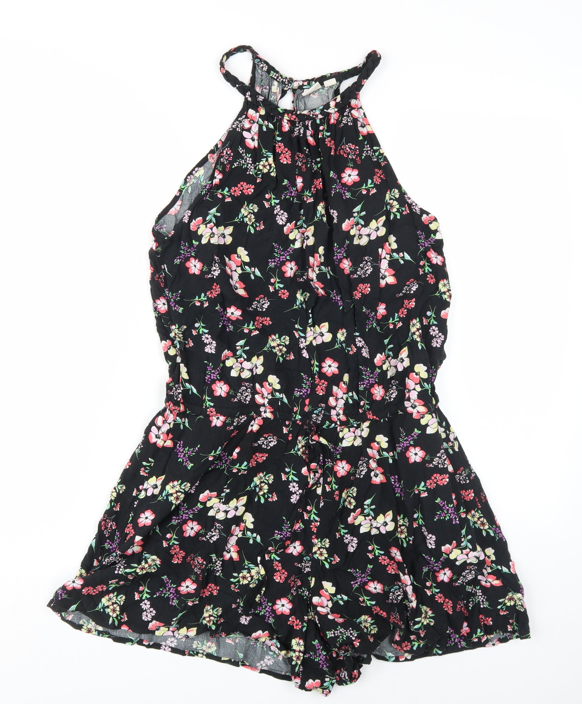 Introducing this delightful GAP floral romper, perfect for your casual summer outings. Designed in a classic black colour, this piece is adorned with vibrant floral patterns that add a touch of freshness and style. The sleeveless design and light fabric make it ideal for keeping cool and comfortable during warmer days. It is crafted from soft rayon, providing a luxurious feel against the skin, while the polyester pocket lining ensures durability. The elastic waist offers a flattering fit, enhancing your silhouette effortlessly. This romper features a keyhole neckline, adding a subtle hint of elegance and modernity. Pair it with your favorite sandals or sneakers for a chic, relaxed look, or dress it up with wedges for evening events. Whether for casual outings, beach trips, or garden parties, this GAP floral romper will serve as a versatile addition to your wardrobe. Condition is excellent, ensuring you enjoy quality without compromise.