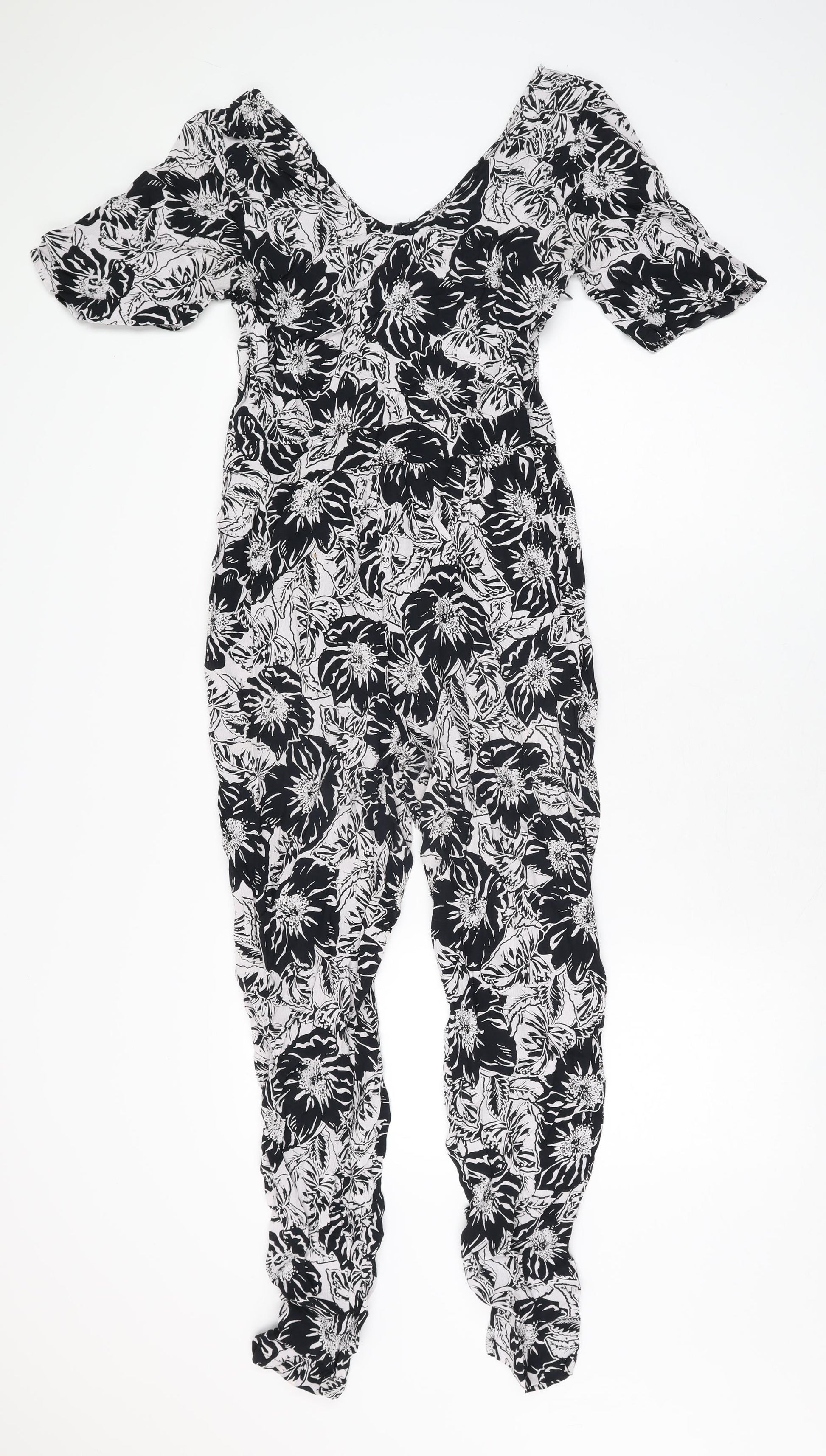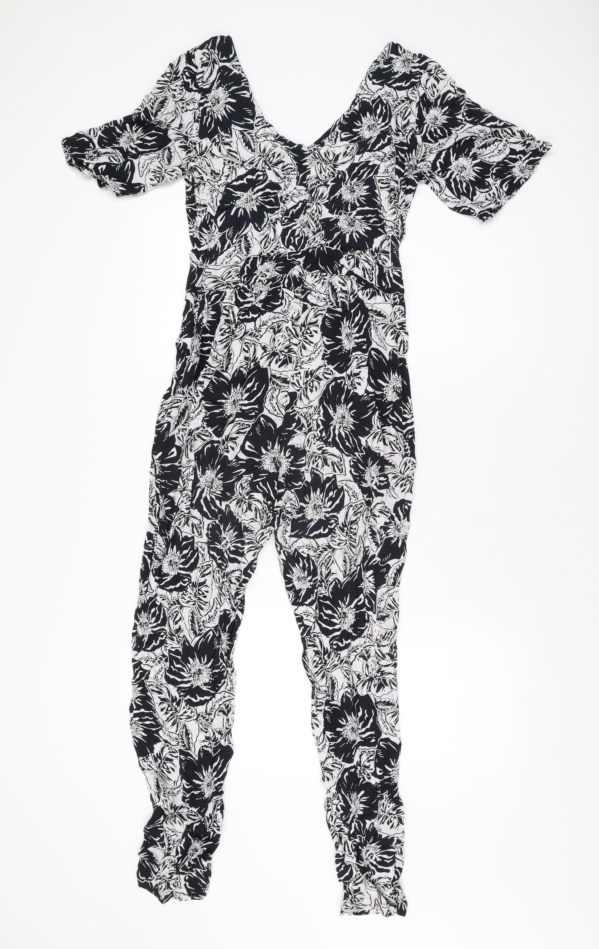 Womens Black Floral Viscose Jumpsuit One-Piece Size 10 L28 in Zip