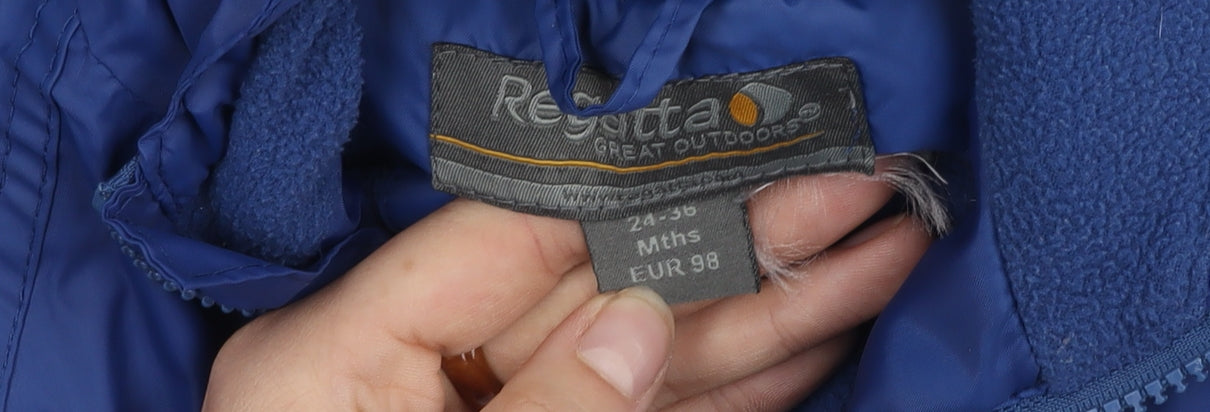 Keep your little one warm and comfortable in the Regatta Unisex Kids Snowsuit. Designed in a sleek blue colour, this snowsuit is perfect for outdoor adventures in the winter season. Made from high-quality polyester with a cosy fleece lining, it ensures your child stays snug and protected from the elements. Featuring a practical hood and full-length zip closure, this snowsuit combines functionality with style. Suitable for children aged 3 years, its regular fit allows for easy movement and wear. Ideal for casual occasions and outdoor play, this machine washable snowsuit is a great addition to any child's winter wardrobe. In excellent condition, with no visible wear or original sales tags, it's priced at just £10.00, offering great value for money. Grab this reliable and comfortable snowsuit for your child today.