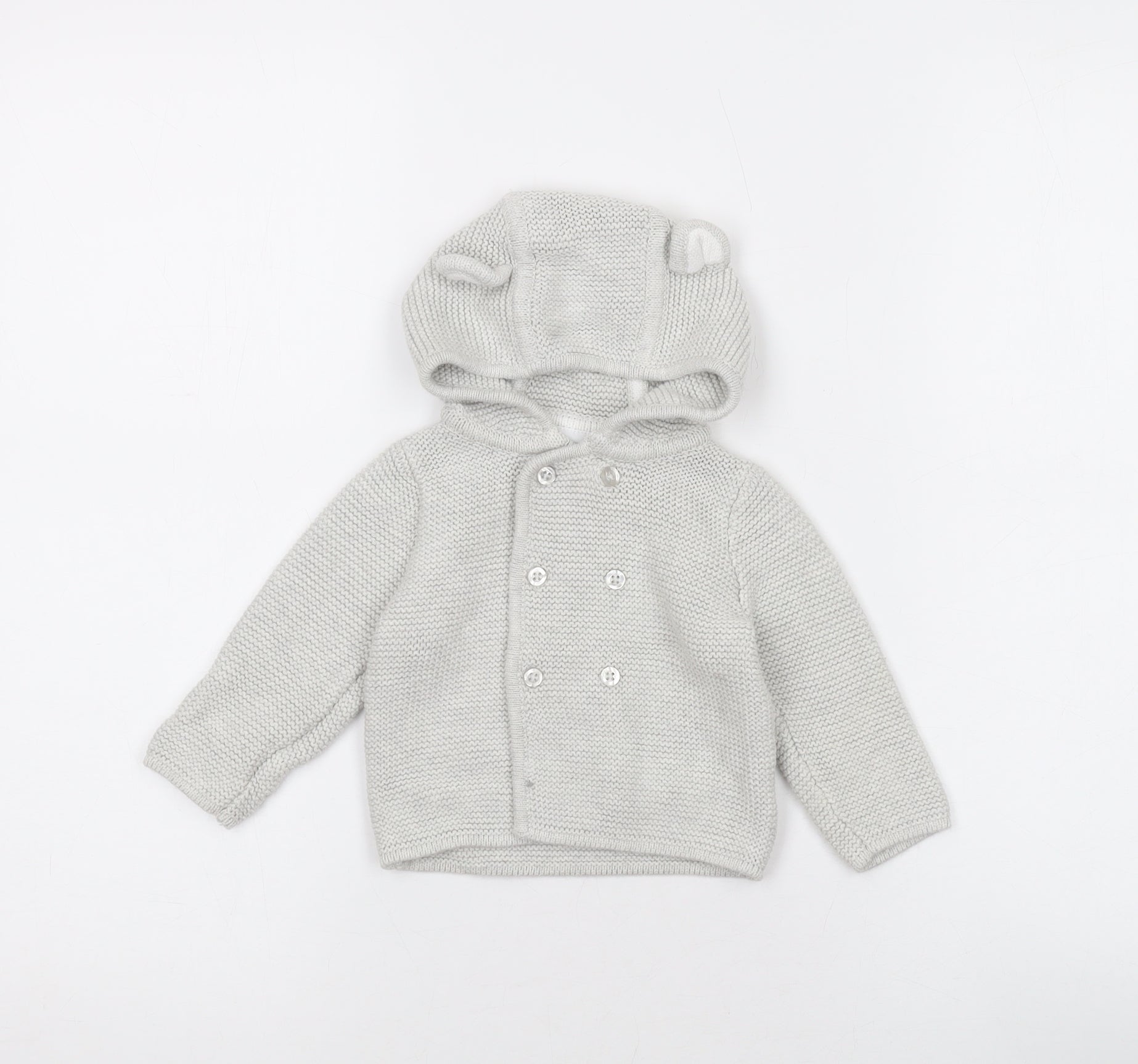 Baby Grey Coir Cardigan Jumper Size 3-6 Months Button
