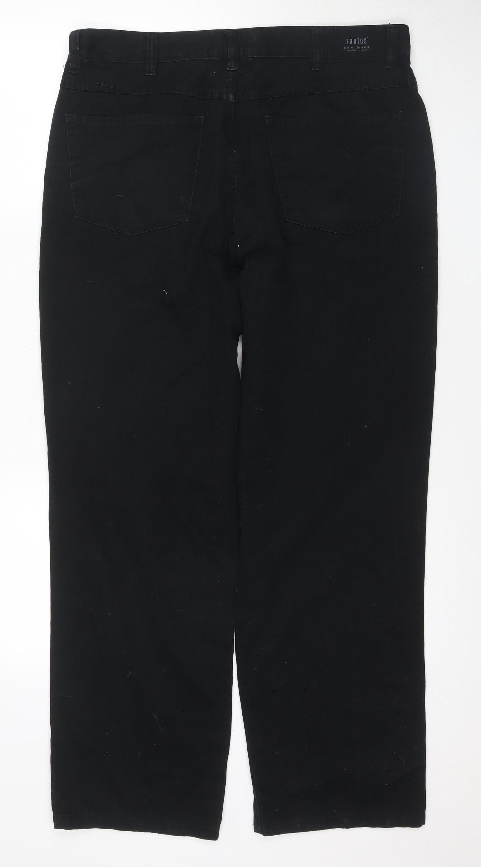 Step up your style game with these sleek black jeans from Zantos, perfect for any man seeking a blend of comfort and sophistication. Crafted from 100% cotton, these jeans offer a classic look with the durability of premium denim fabric. Easily machine washable, maintaining their pristine condition is effortless. With a regular fit and 91 cm waist, these jeans ensure a comfortable wear suitable for various occasions, whether you're heading to a casual outing or dressing up for a night out. The jeans feature a classic 5-pocket design, providing both practicality and style. A reliable button closure keeps these jeans comfortably in place throughout the day. Although previously worn, they remain in excellent condition, exhibiting only minimal signs of use. These versatile black jeans make an essential addition to any wardrobe, offering understated style that pairs seamlessly with almost any top. Don't miss the opportunity to experience these fashionable and practical jeans that promise to enhance your everyday look.