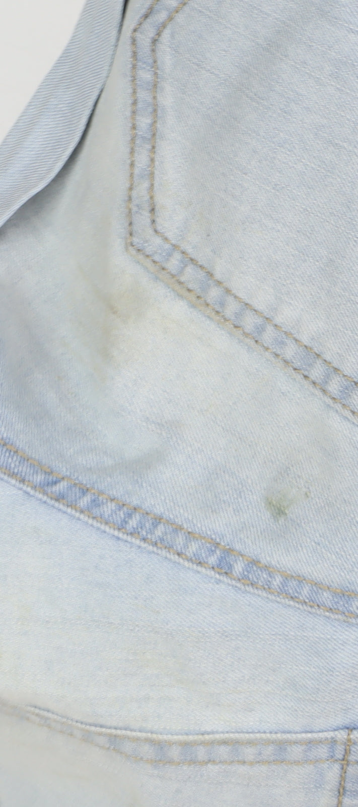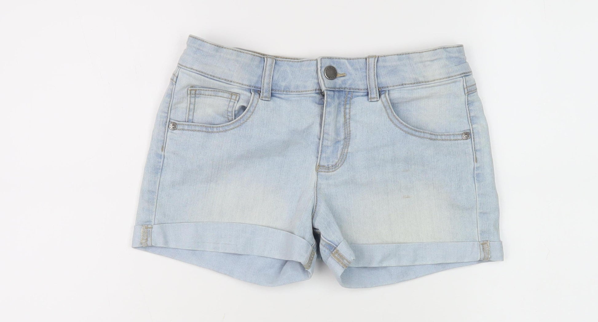 Introduce a stylish addition to your girl's summer wardrobe with these United Colors of Benetton denim shorts. Featuring a classic cut-off style, these shorts are perfect for casual outings and summer adventures. Made from a comfortable blend of cotton, polyester, and elastane, they ensure ease of movement with a regular fit. The light-washed blue denim and flat front add a touch of modern fashion, while practical pockets contribute to their everyday appeal. The zip closure ensures secure and easy wear, making these shorts both functional and fashionable. Ideal for sunny days, these shorts can be paired with a variety of tops, promising versatility in styling. Though gently worn, these shorts remain in very good condition, offering quality at an affordable price. Slight imperfections are visible, highlighting their pre-loved character, while their robust construction guarantees durability throughout the season. Perfect for a relaxed and effortless look, these denim shorts are a timeless garment for your young fashionista.