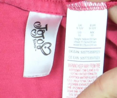 This girls' JoJo Siwa pink long sleeve T-shirt is a lively and vibrant addition to any wardrobe. Featuring a delightful array of graphics including a rainbow, unicorn, cupcake, and the iconic JoJo Siwa branding, this T-shirt is perfect for young fans. The glitter accent adds a touch of sparkle, making it ideal for those who love a bit of shine in their everyday wardrobe. Crafted from 100% cotton, it offers comfort and breathability, making it perfect for casual wear throughout all seasons. The crew neck and regular fit ensure a comfortable wear, while durable jersey fabric is machine washable for easy care. Whether for a day out or simply lounging around, this top promises to be a favorite choice. Suitable for girls aged 8-9 years, this delightful piece offers a charming way to embrace the JoJo Siwa theme with style and flair.