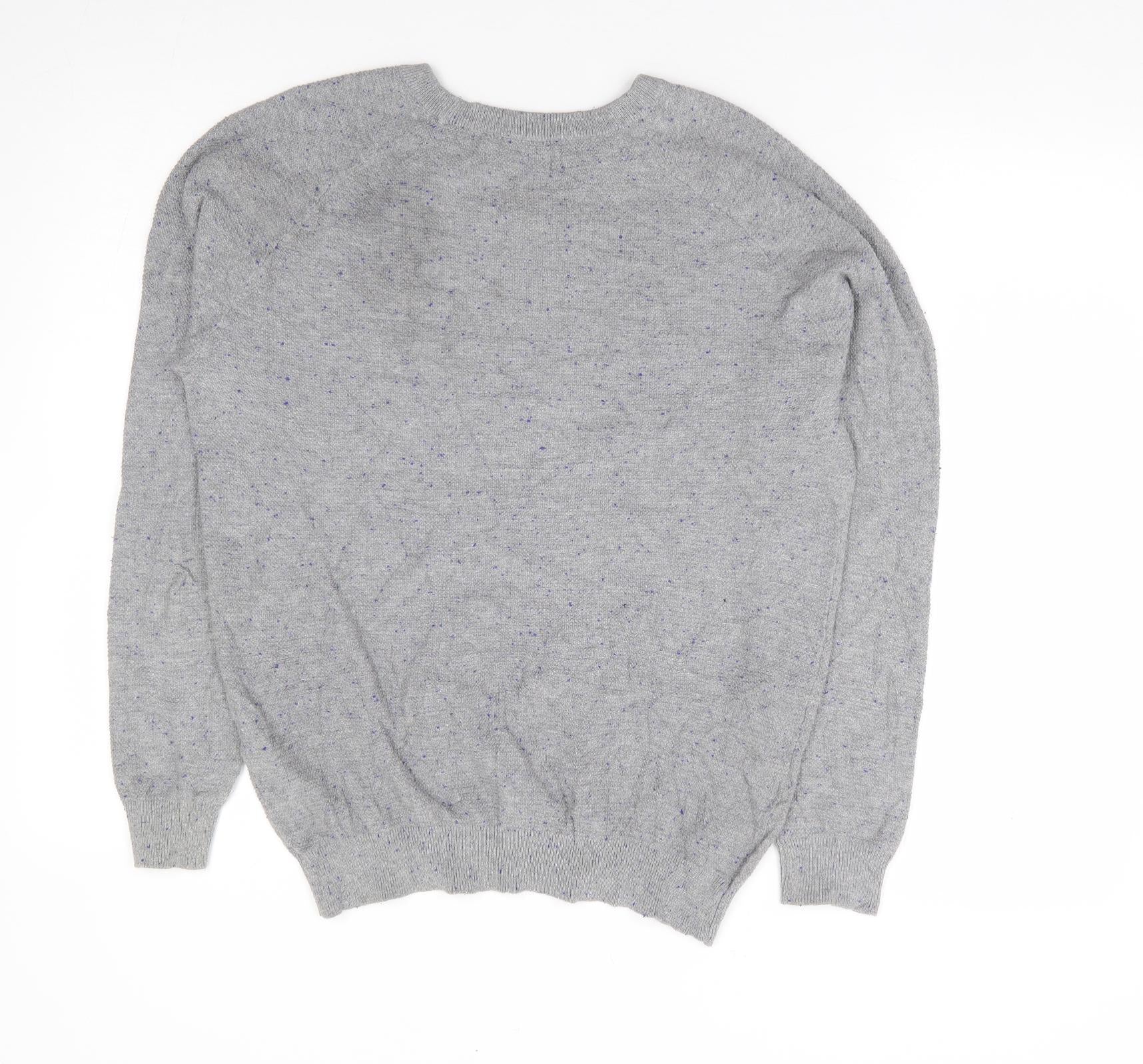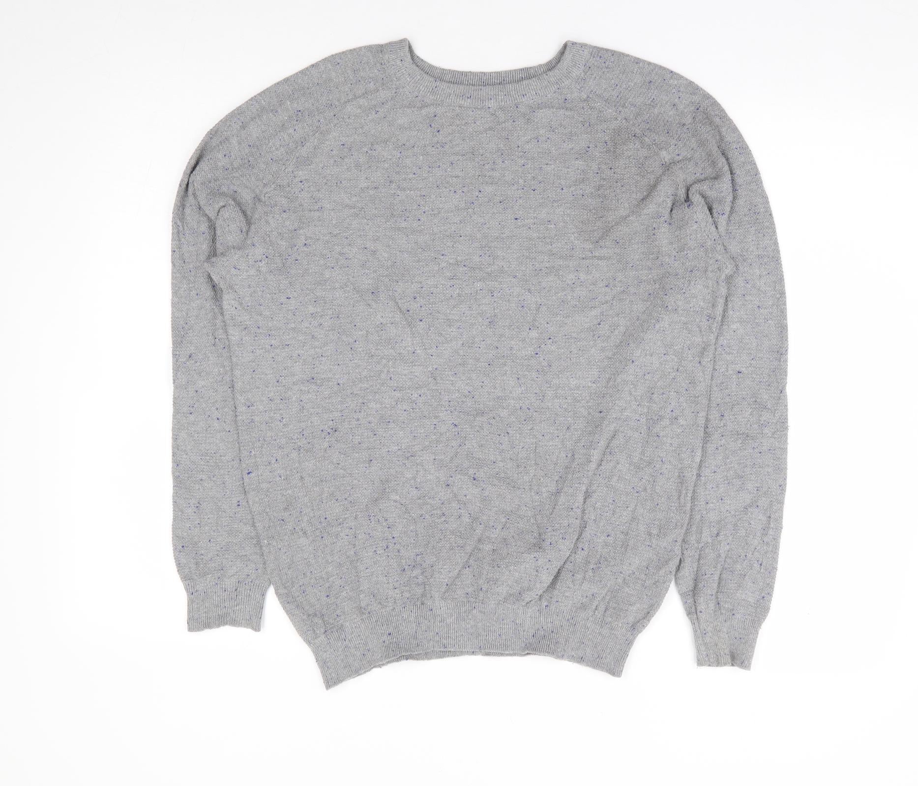 Mens Grey Crew Neck Cotton Pullover Jumper Size M