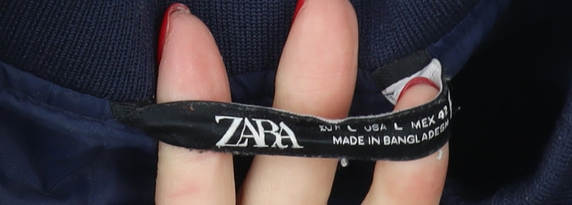 Elevate your casual wardrobe with this stylish Zara Men's Blue Bomber Jacket. Crafted for those who appreciate a blend of fashion and function, this jacket is perfect for transitioning through the cooler autumn and spring seasons. The classic bomber jacket silhouette offers a modern and sleek look, featuring a stand-up collar and a convenient zip closure. Designed for the modern man, this jacket in size L provides a regular fit that ensures comfort without compromising style. Featuring zipped pockets, this jacket combines practicality with a clean design, allowing you to carry your essentials with ease. Made entirely from polyester, it offers durability while maintaining a lightweight feel, ensuring it's an easy choice for those on the go. Its short length adds a contemporary edge to your ensemble, allowing for versatile styling across various outfits and occasions.This blue bomber jacket is ideal for casual outings, offering a sophisticated yet relaxed vibe. Its neutral tone makes it easy to pair with a variety of colours, ensuring it'll be a staple piece in your wardrobe. Zara's attention to detail is evident in the jacket's construction, making it a durable choice for years to come.While this jacket is presented in excellent condition, minor signs of wear add character without detracting from its stylish appearance. Whether you're heading to a casual meeting or enjoying a laid-back weekend, this Zara bomber jacket will complement any look.Add this timeless piece to your collection and enjoy the blend of comfort and style it brings to every outfit.