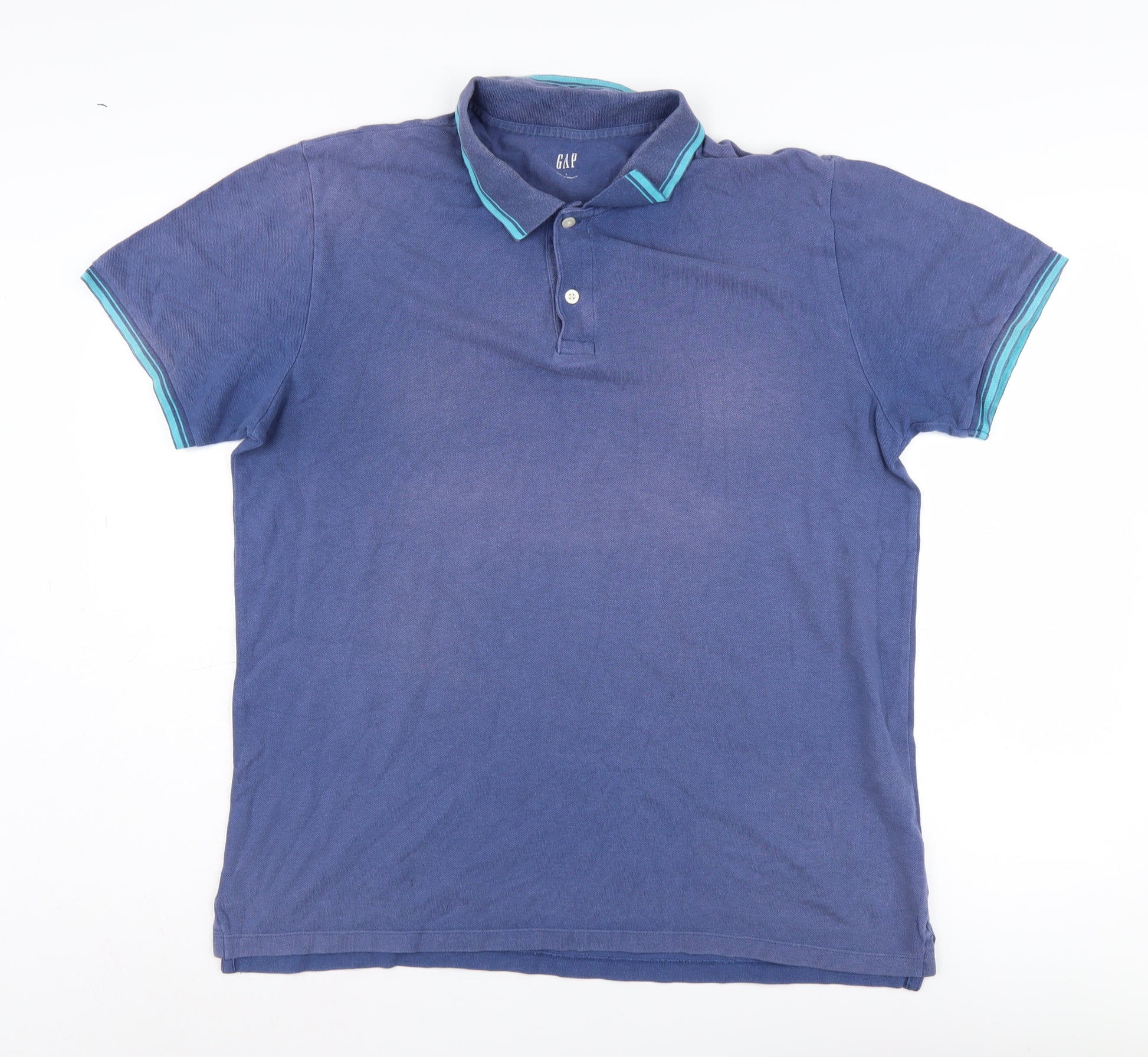 Gap Men’s Blue Striped Cotton Polo Shirt Size L Regular Fit
