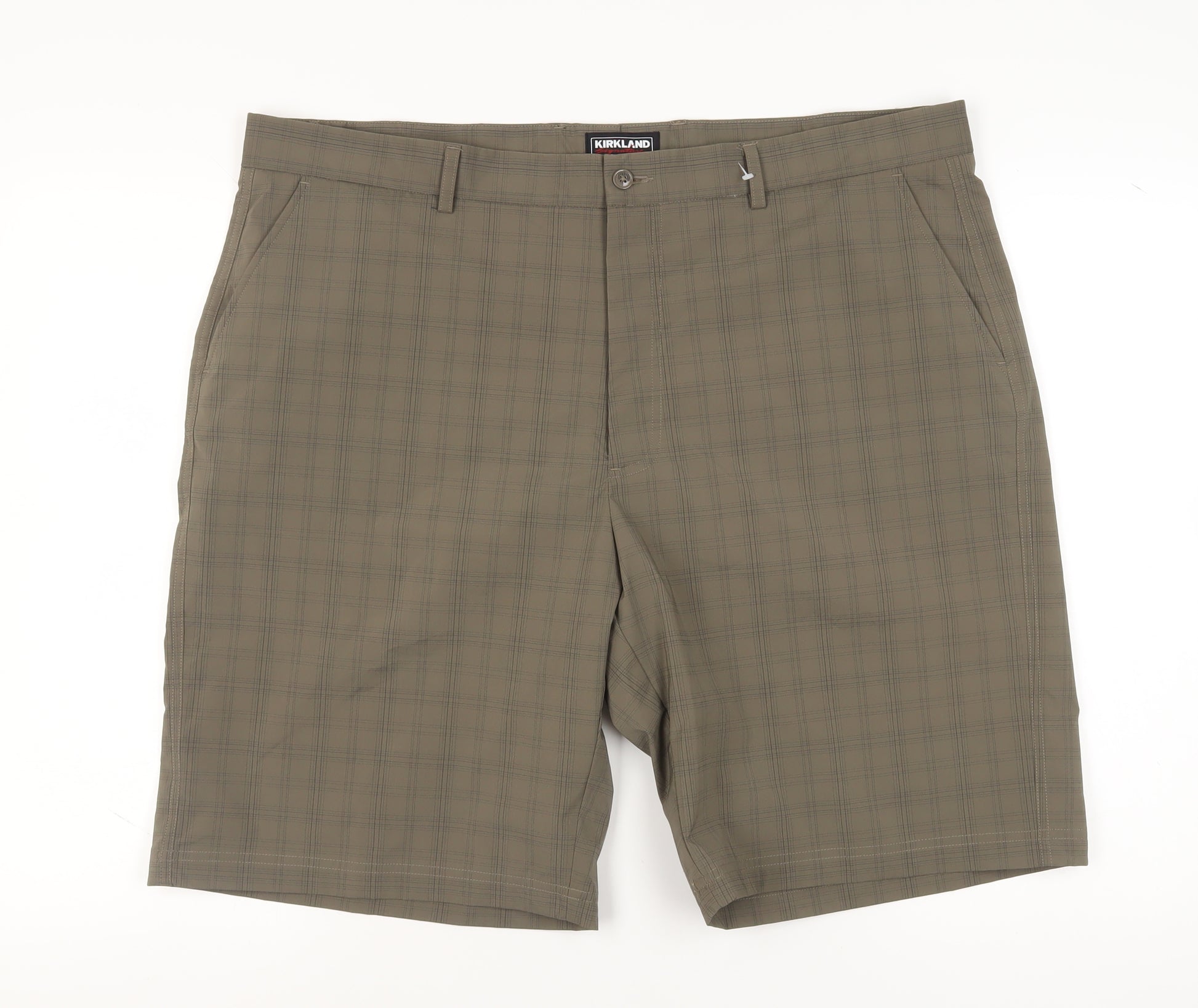 Introducing the Kirkland Signature Men's Chino Shorts, a perfect blend of style and comfort. Designed for casual outings, these shorts feature a relaxed fit with a sleek flat front. The classic brown shade with a subtle check pattern adds a touch of sophistication to your summer wardrobe. Crafted with 95% Polyester and 5% Elastane, these shorts provide excellent breathability and stretch, ensuring comfort throughout the day. The regular waist size of 42 offers a comfortable fit, while the mid-rise adds to the ease of wear. Practical pockets are included for functionality, making these shorts ideal for daily wear. The button closure adds a classic accent, keeping the style secure and neat. Perfect for spring, summer, and autumn, these shorts are versatile for various casual occasions. With the machine washable feature, maintenance is a breeze. Grab these brand new shorts that promise quality and durability, and elevate your everyday style effortlessly.