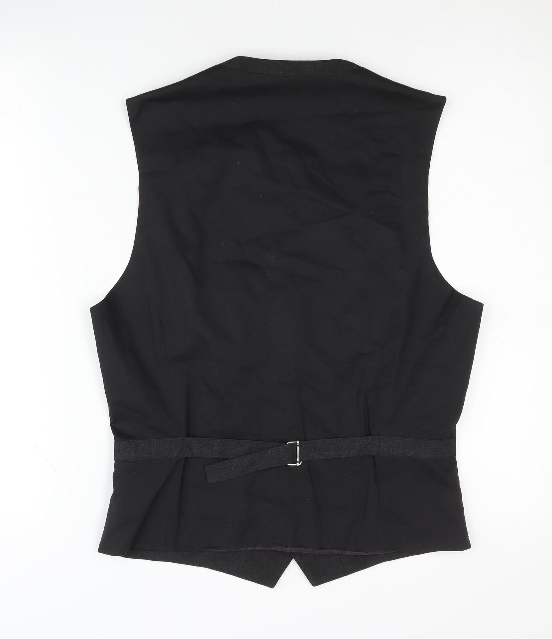 Discover elegance and sophistication with the Fellini Tailored Men's Black Waistcoat, a perfect addition to formal attire. Crafted for those who appreciate fine tailoring, this waistcoat in size 36L offers a sleek and tailored fit that's perfect for formal occasions. Comprising a rich blend of 65% polyester and 35% viscose, the waistcoat ensures both durability and comfort. The black colour exudes timeless charm, ensuring you always look sharp and composed. Designed with no pattern and crafted for a regular fit, it boasts versatility across various formal settings, from weddings to business functions. The 100% polyester lining promises extra comfort and breathability, making it ideal for all-day wear in autumn, spring, or summer. This waistcoat lacks visible wear, promising excellent pre-owned condition with no visible issues. Its understated elegance makes it an essential piece for any wardrobe, offering refinement and style without compromising on comfort. Elevate your formal ensemble with this classic waistcoat—perfect for those who appreciate the craftsmanship of Fellini Tailored. Whether for a stylish evening out or a sophisticated business event, this piece offers unbeatable style and practicality, ensuring you make a lasting impression.