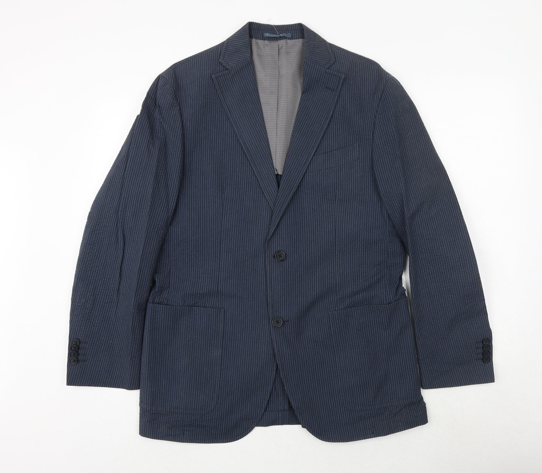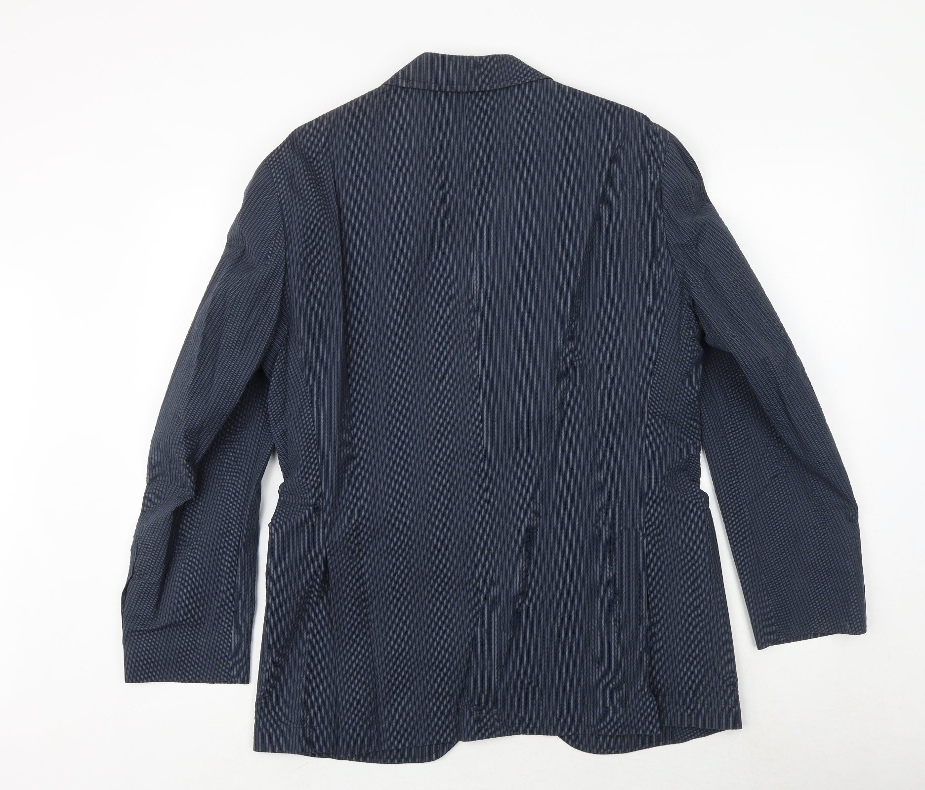 Mens Blue Striped Cotton Jacket Suit Jacket Size 38 Regular