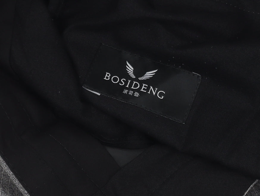 Step into elegance with these Men's Dress Pants by Bosideng, ideal for both business and formal occasions. Crafted from high-quality 100% Wool, these grey trousers offer a sophisticated herringbone pattern that subtly stands out, while the straight leg cut provides a classic silhouette. Designed for comfort, these trousers feature a flat front and a practical button closure, making them an essential addition to any wardrobe. The premium wool material ensures durability and warmth, perfect for the autumn and winter months. Ideal for business meetings or formal events, these trousers can be paired effortlessly with a crisp shirt or a stylish blazer for a refined look. Keep the fabric in prime condition with dry clean only care. These trousers are in excellent condition with no visible defects, ready to elevate your style.