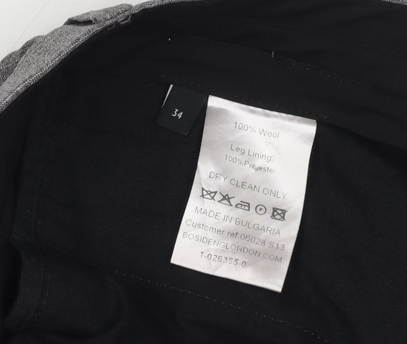 Men's Grey Dress Pants - Size 34, Wool, Formal