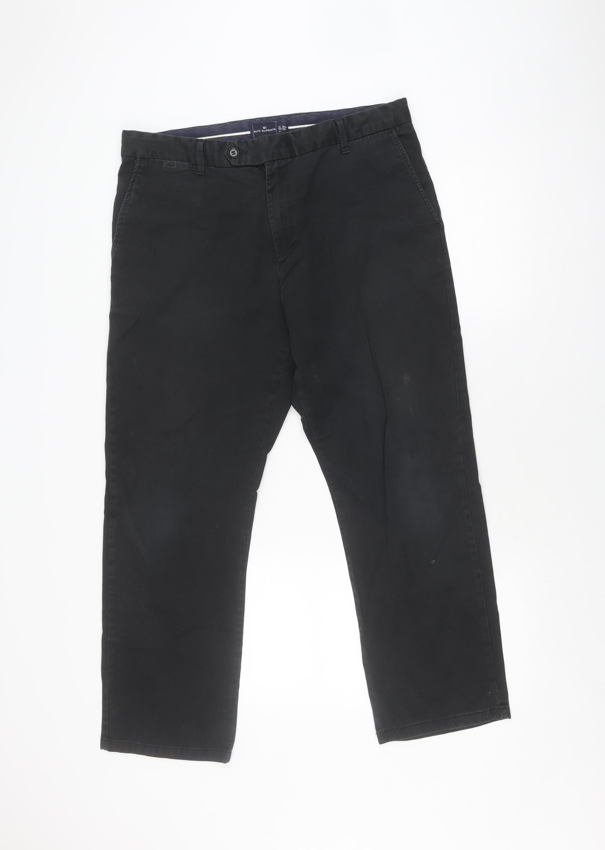 Discover the epitome of comfort with these Black Men's Trousers from the renowned Marks and Spencer. Tailored for those who value style and functionality, these trousers make an excellent addition to any wardrobe. Constructed from a breathable Cotton and Elastane fabric blend, these trousers offer a slight stretch to move with you throughout your day. Ideal for both casual and semi-formal occasions, their refined black hue is perfect for pairing with a variety of tops, from simple T-shirts to button-down shirts. These trousers feature a regular size fit, ensuring a comfortable wear for waist sizes 36 inches. The inside leg measures 29 inches, catering to those who prefer a slightly shorter leg length. Fashioned from high-quality materials and crafted with precision, you can trust these trousers to offer durability, allowing you to enjoy them time and time again. Whether you're heading to the office or planning a casual outing, these trousers rise to the occasion. Machine washable for easy care, they are ideal for those who seek low-maintenance yet elegant solutions to everyday dressing dilemmas. Enhance your closet with these versatile trousers that seamlessly blend the reliable craftsmanship of Marks and Spencer with a modern, stylish appeal.