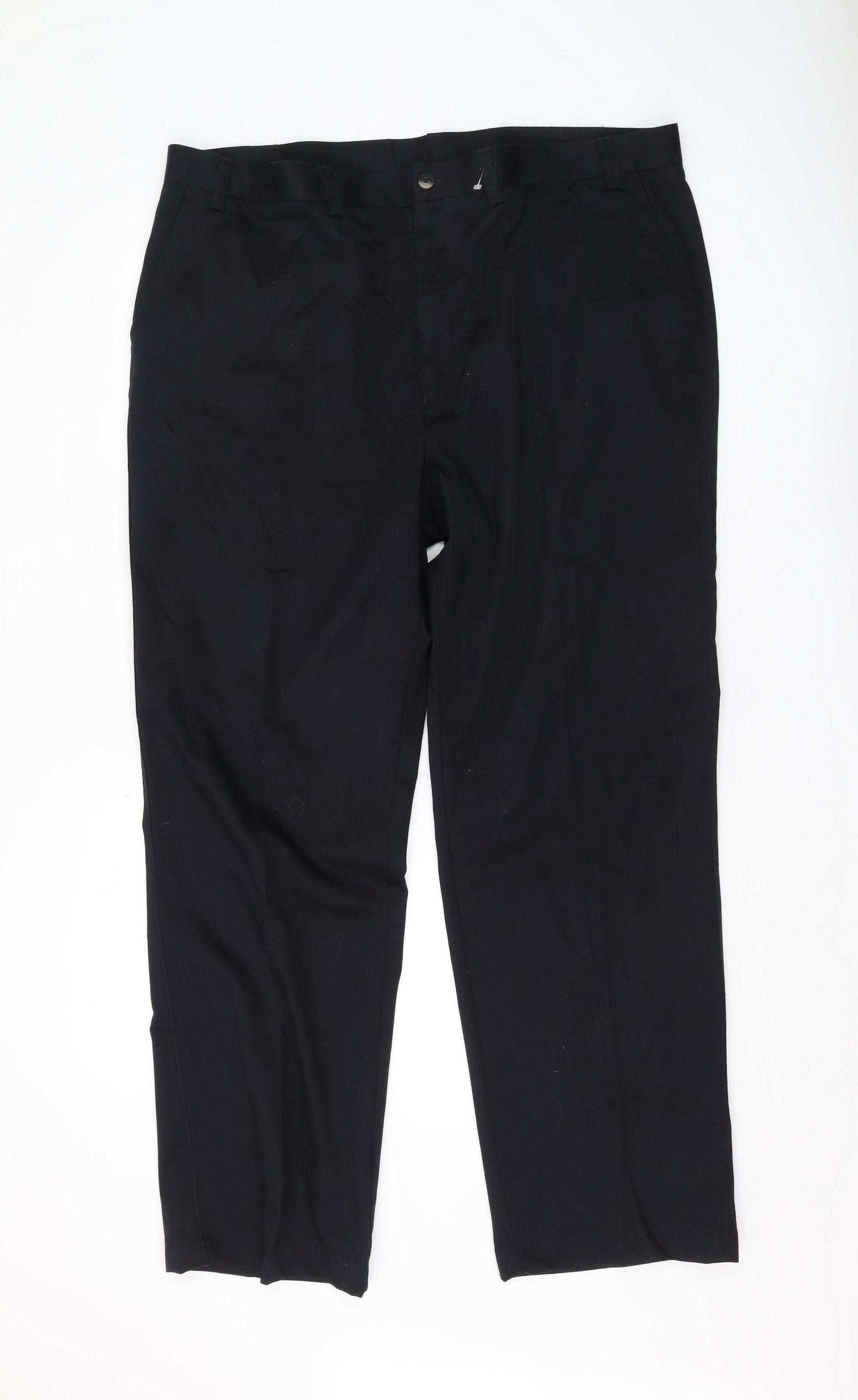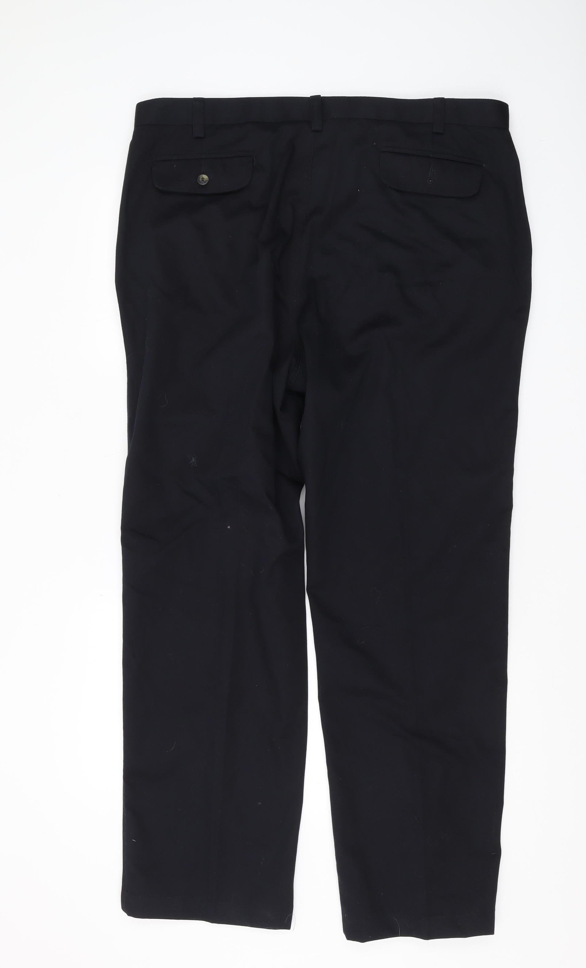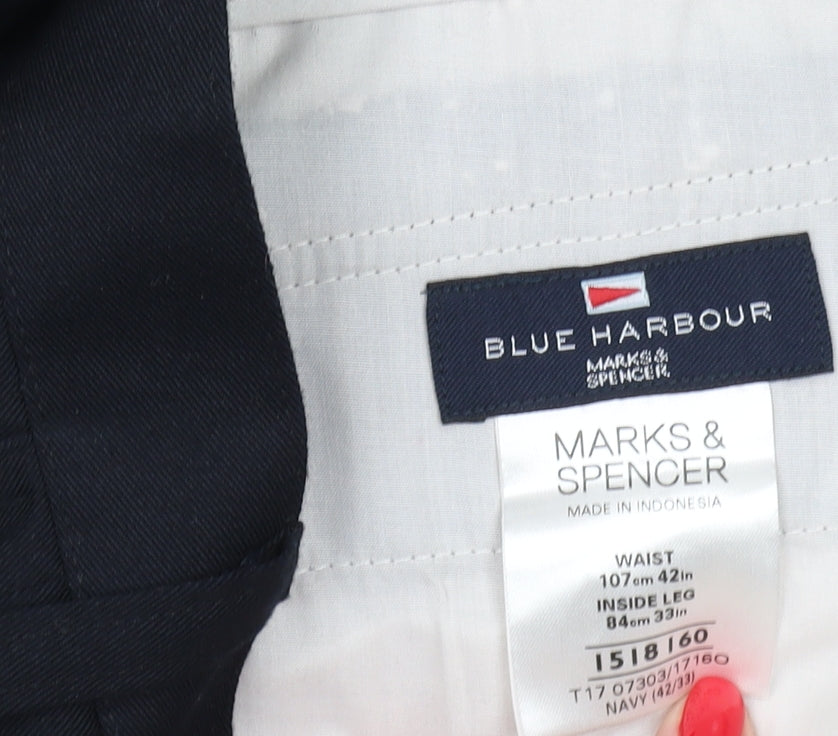Upgrade your wardrobe with these stylish Marks and Spencer chinos. Crafted for the modern gentleman, these black trousers embody a seamless blend of style and comfort, perfect for both casual and workwear settings. Constructed from a durable twill fabric, the composition includes 65% polyester and 35% cotton, ensuring both durability and breathability. With a regular fit, flat front, and straight leg style, they offer a timeless aesthetic that pairs effortlessly with both shirts and casual tops. The trousers feature convenient slash pockets and secure with a button and zip closure, making them a practical choice for everyday wear. Suitable for autumn, spring, and winter, these chinos are machine washable, adding ease to your garment care routine. Whether you're heading into the office or out for a relaxed weekend, these trousers will keep you looking sharp and feeling comfortable. Don't miss the chance to add this essential piece to your collection.