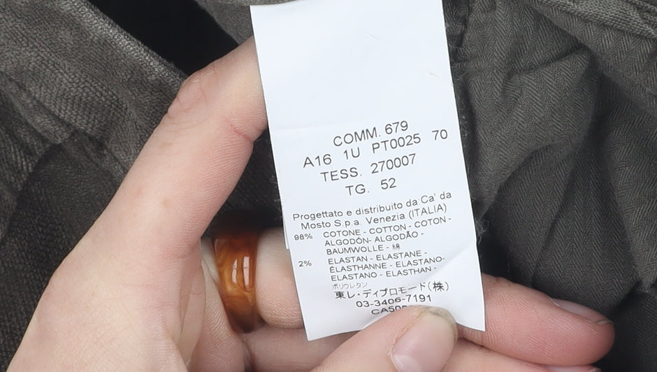 Elevate your casual wardrobe with these SEVENTY Men's Grey Chino Trousers, an epitome of style blended with comfort. Crafted from a reliable composition of 98% cotton and 2% elastane, these trousers ensure a perfect fit with just the right amount of stretch. The grey hue offers a versatile base for various outfit combinations, suitable for any casual or semi-formal occasion. These chinos boast a classic straight leg design that is timeless, providing a sleek silhouette that complements a variety of body types. With a regular fit, they promise comfort without compromising on style. The trousers feature a button and zip closure, offering ease and security. Expertly designed with a flat front and no pattern, they add elegance to your attire without overwhelming it. The inclusion of slash pockets not only enhances functionality but also maintains the clean lines of the design. Lightly worn and in excellent condition, these trousers reflect quality and durability. Ideal for those who value comfort and style in their attire, these chinos will become a staple in your wardrobe for years to come. Whether dressing up a simple tee or pairing with a crisp shirt, they offer endless styling options. Priced affordably, they combine practicality with chic aesthetics, ensuring you stay stylish and comfortable throughout the day. A perfect addition for any modern man looking to enhance his collection with versatile, high-quality trousers.