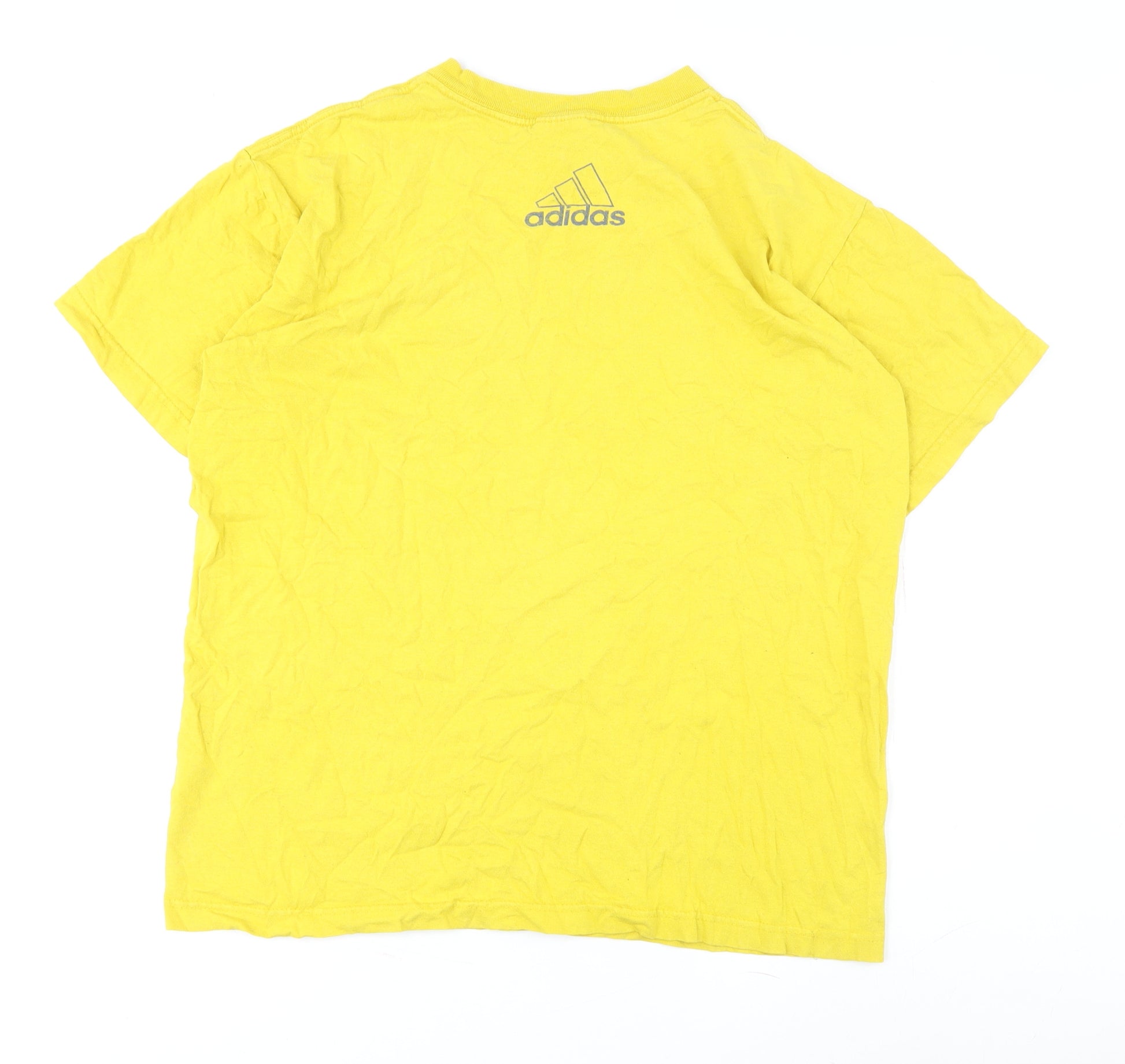 Step up your casual wardrobe with this vibrant yellow Adidas men’s T-shirt. The unmistakable Adidas logo elevates its stylish yet sporty design, making it the perfect choice for everyday wear. Crafted from soft and breathable cotton jersey, it offers exceptional comfort and durability. Perfect for any season, this T-shirt features a classic crew neckline and regular fit, ensuring a relaxed silhouette that complements your natural shape. Its short sleeves and lightweight fabric make it ideal for layering or wearing solo, no matter the occasion. While the solid yellow colour adds a pop of brightness to any outfit, this T-shirt seamlessly blends with a variety of styles. Whether you’re hitting the gym, exploring the city, or simply relaxing at home, this T-shirt is versatile enough to keep you looking fresh and chic. Add this excellent condition Adidas T-shirt to your collection for an effortless blend of comfort, style, and brand authenticity.
