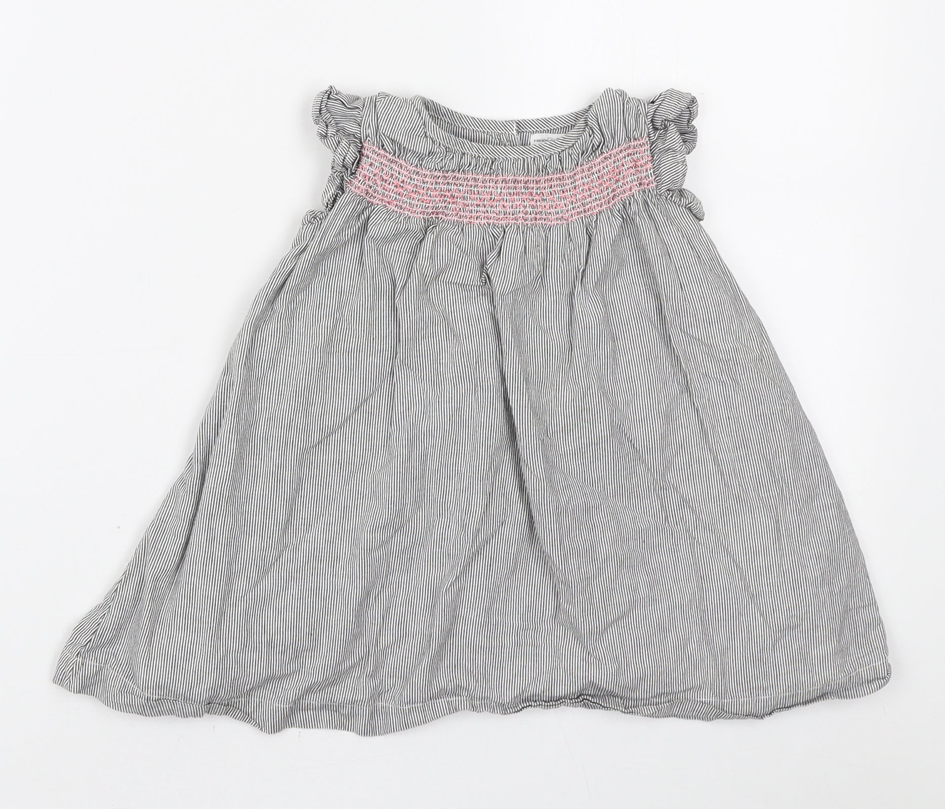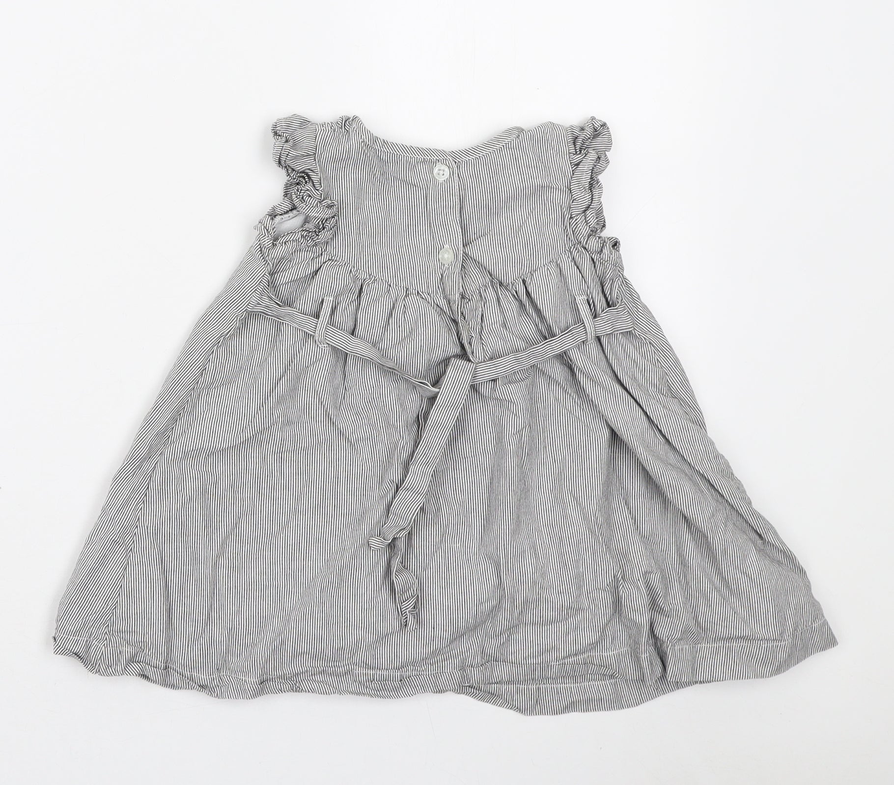 Girls Grey Striped Cotton A-Line Size 18 Months Round Neck Button