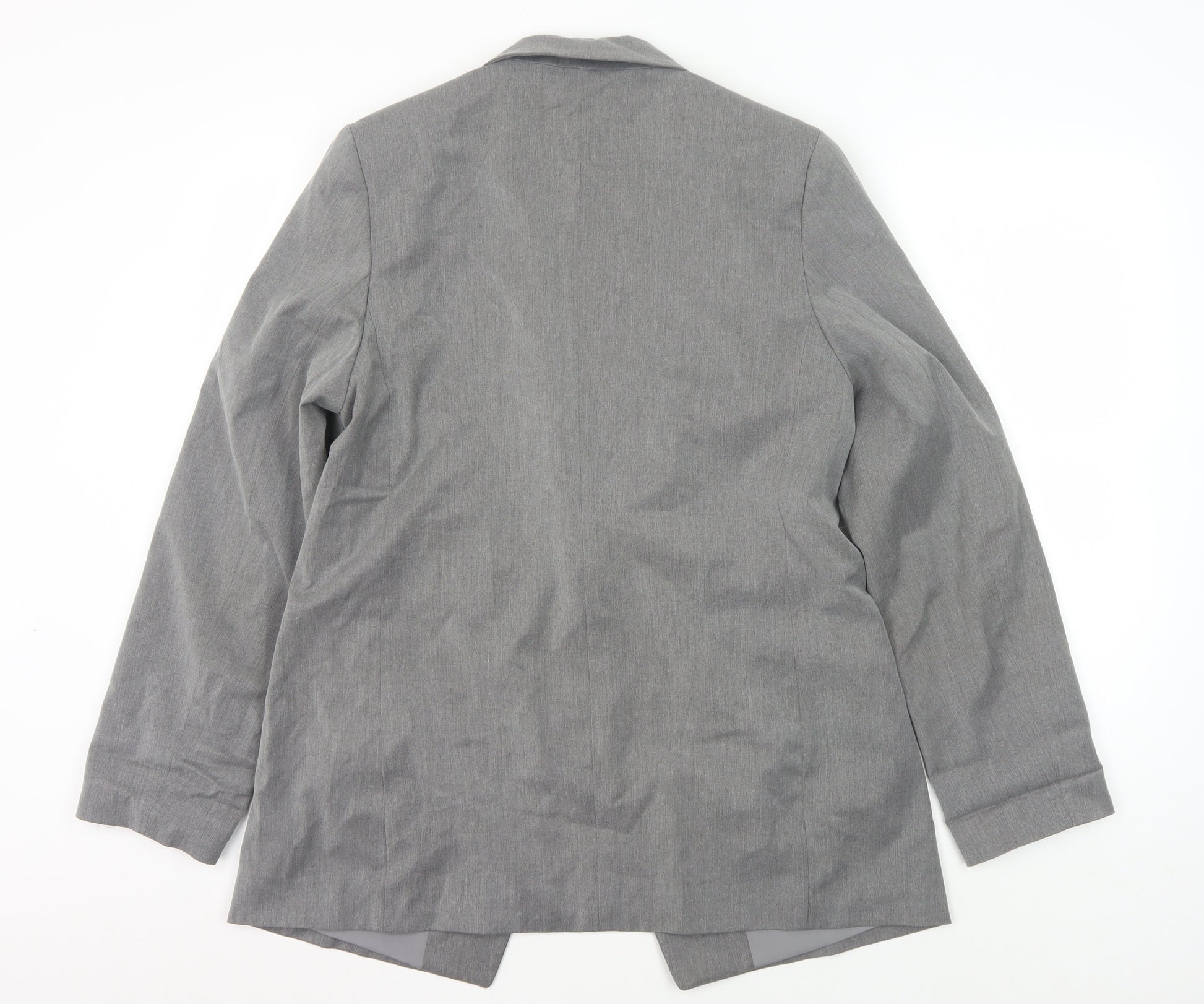 Step into sophistication and style with this H&M unisex suit jacket in a timeless grey hue. Crafted for both comfort and elegance, this piece is a perfect addition to any formal wardrobe. With a UK size 14, it offers a relaxed fit that is flattering on various body types. The jacket is tailored in a classic one-button, single-breasted style with notch lapels, making it ideal for business, formal, or workwear occasions. Composed of a high-quality blend of 68% polyester, 29% viscose, and 3% elastane, this jacket ensures durability and a touch of stretch for enhanced comfort. The full polyester lining adds an extra layer of comfort, keeping you at ease throughout your wear. Designed with long sleeves and standard length, it provides a refined appearance for both autumn and spring seasons. Easy to care for, this jacket is machine washable, saving you time and effort. Though the fabric displays minor wrinkles, the overall condition is excellent, ready to elevate your wardrobe. Versatile and chic, this jacket can be paired effortlessly with various ensembles, making it a staple piece for fashion-forward individuals.
