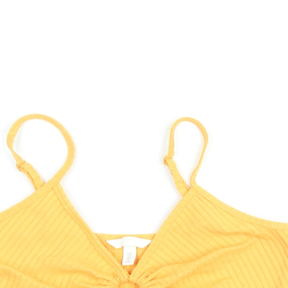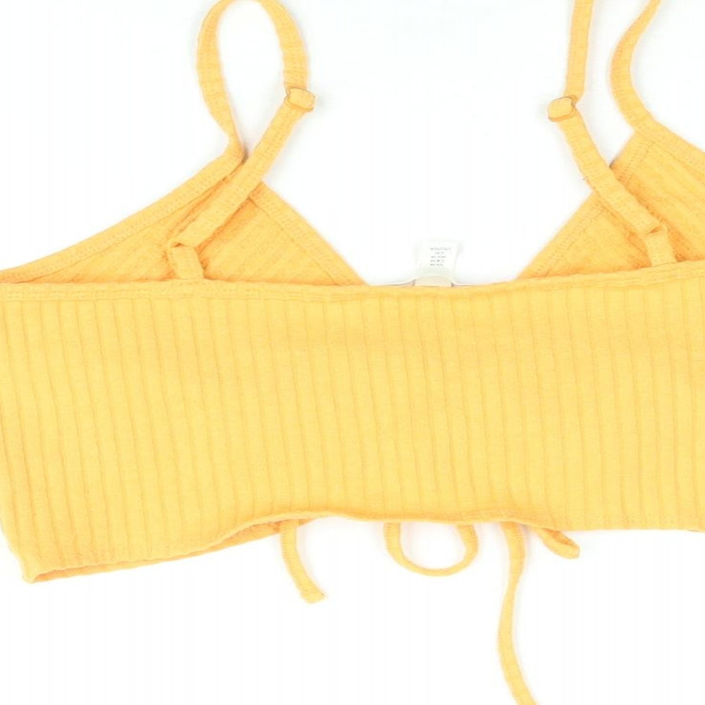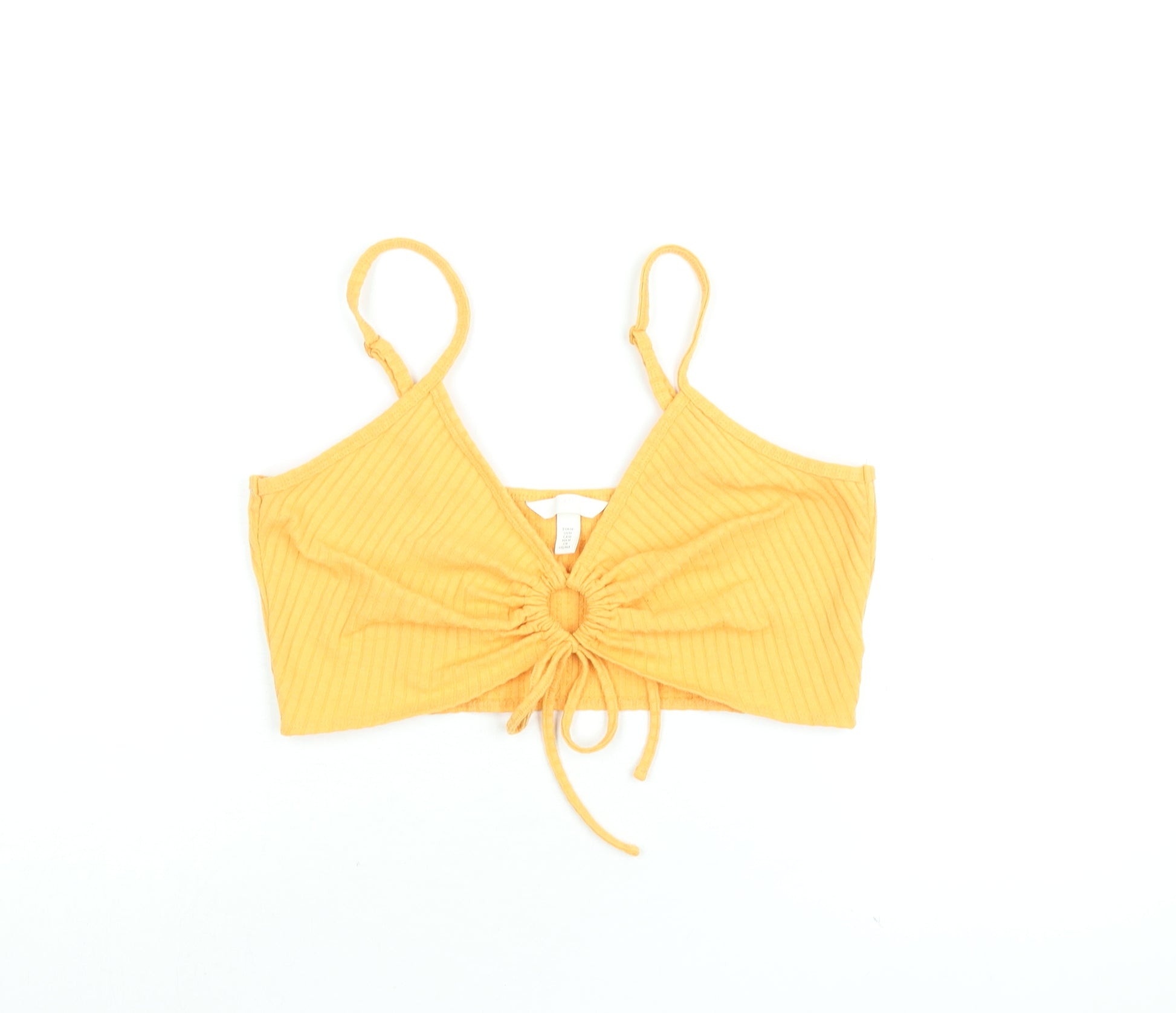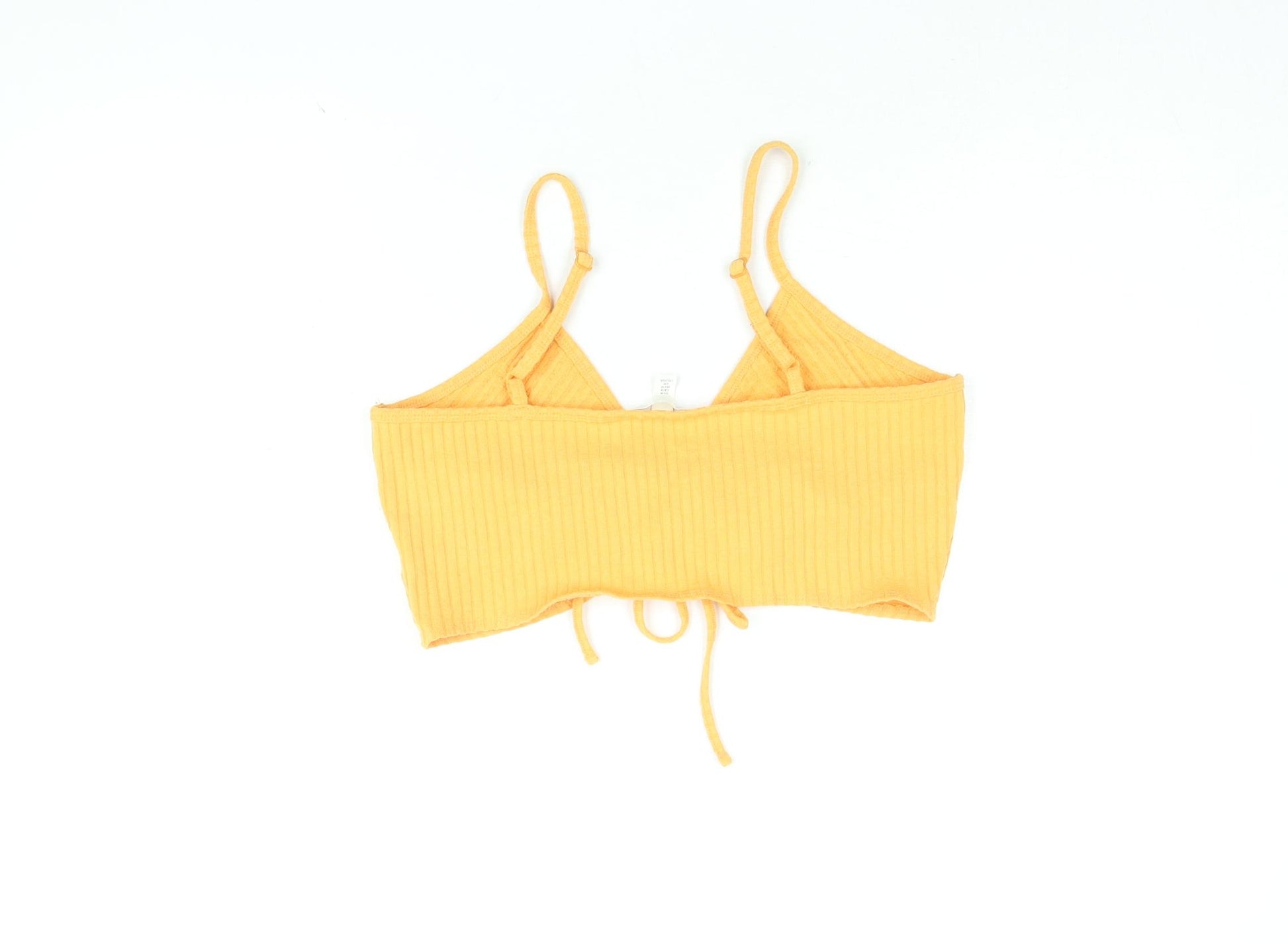 Womens Orange Polyester Cropped T-Shirt Size M V-Neck