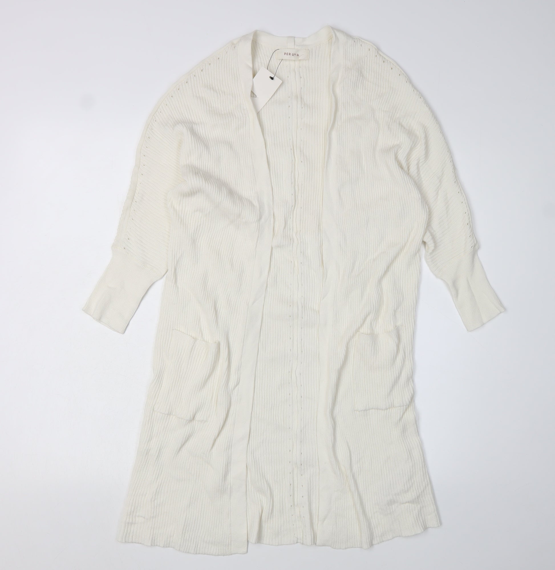 This elegant Marks and Spencer cardigan in a soft ivory shade is a perfect addition to any women's wardrobe. Crafted from a blend of Lyocell, Flax, and Polyamide, it offers a comfortable fit and a luxurious feel. The cardigan is designed with long sleeves and is suitable for casual wear during all seasons, making it a versatile piece. With no pattern and a regular fit, it can be easily styled with various outfits. Machine washable for easy care, this brand new cardigan is a chic and practical choice for your collection. Elevate your style effortlessly with this timeless knitwear from Marks and Spencer.