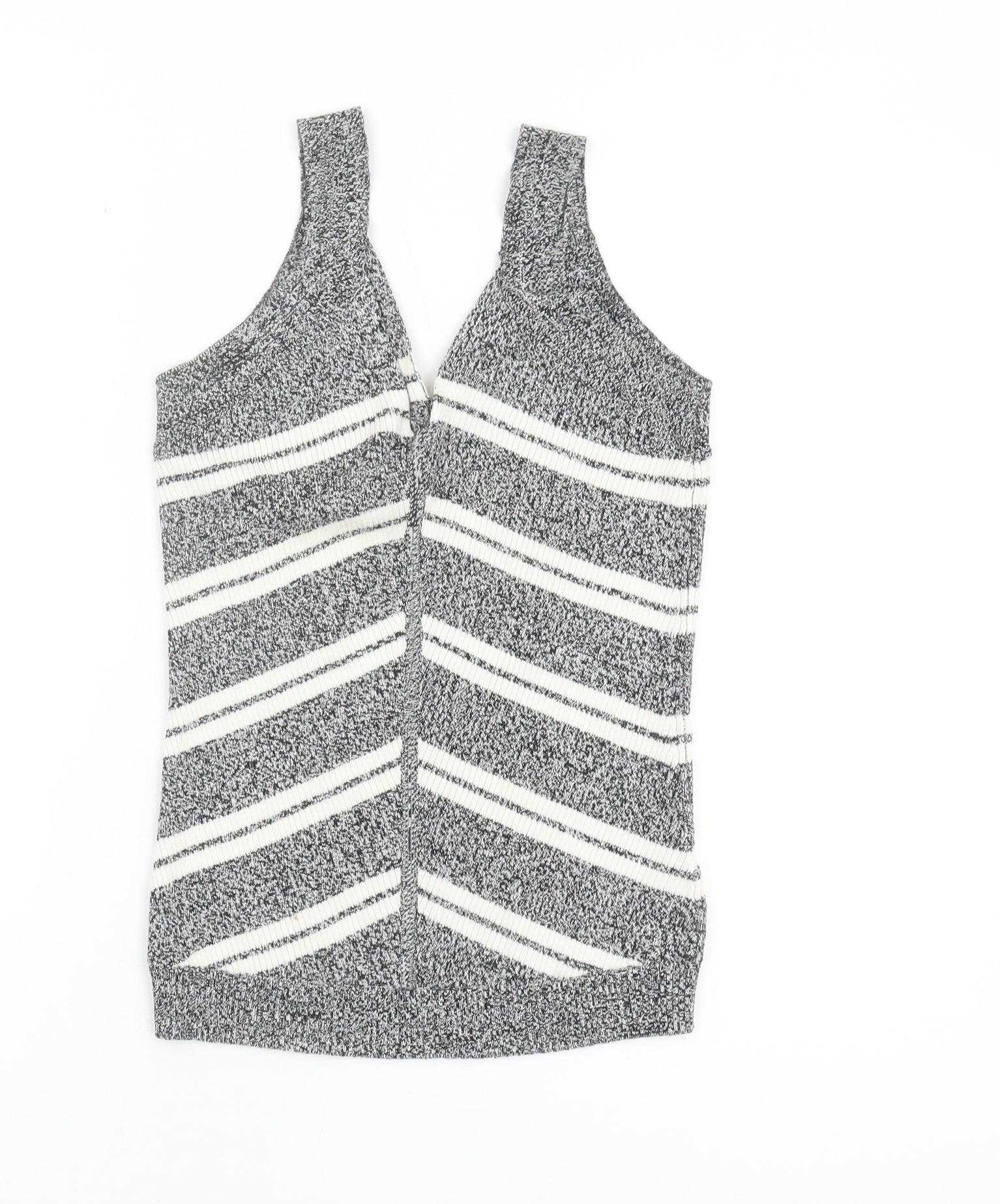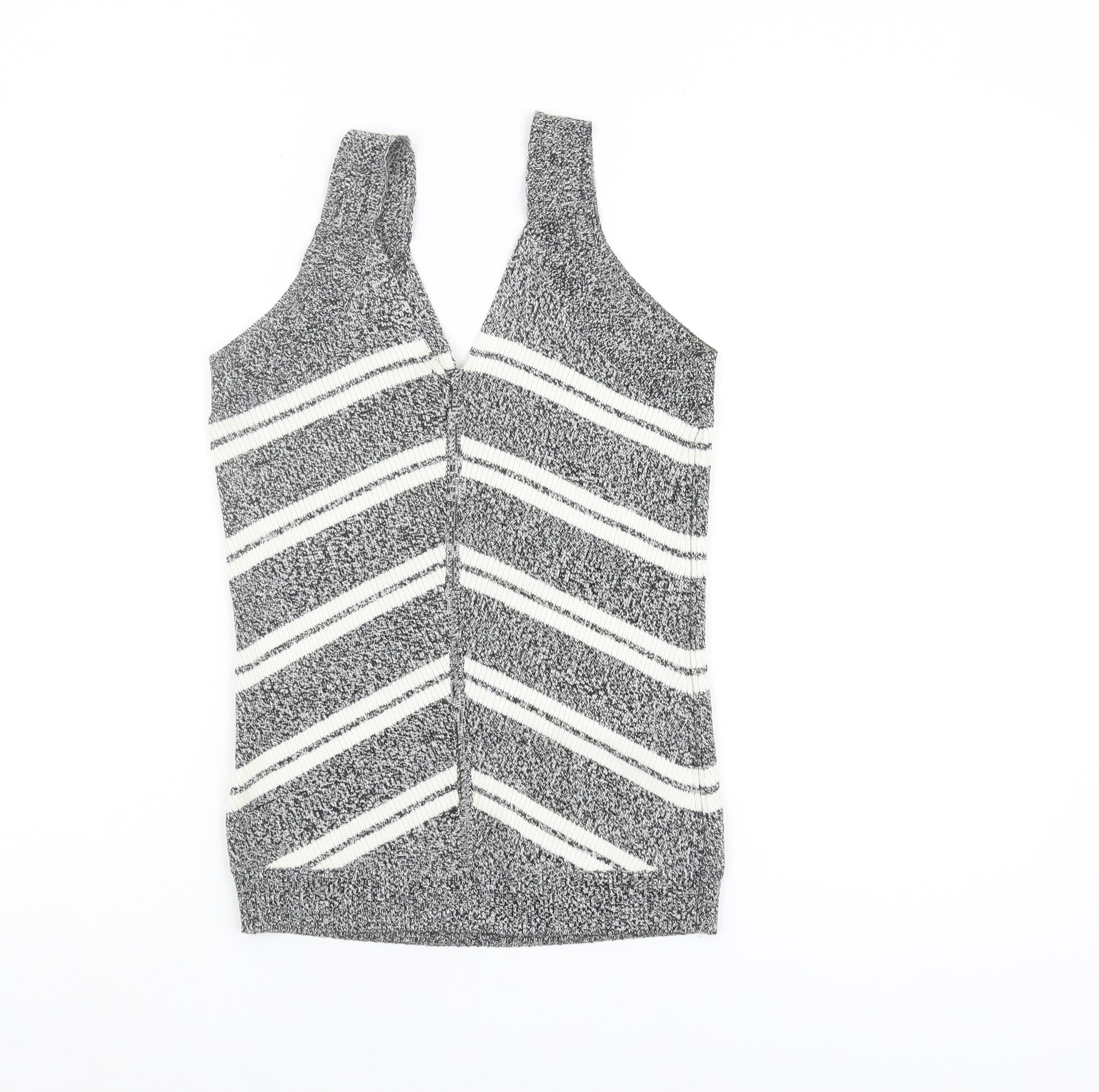 Delve into sophistication with this exquisite Marks and Spencer Women's Tank Top, an ideal addition to any wardrobe. Crafted from a luxurious blend of 55% silk and 45% cotton, this knit camisole provides a chic and breathable wearing experience. Showcasing an elegant V-neckline and a striking black striped pattern, this sleeveless top combines classic style with modern flair. Perfectly suited for a casual day out or a cosy summer gathering, its regular fit ensures comfort without compromising on style. The use of quality materials guarantees a soft and durable garment, accentuating a poised and polished look. Easy to maintain with a machine washable feature, this tank top offers versatility for all seasons. Whether paired with jeans for a laid-back touch or layered under a jacket for added warmth, it remains a standout piece. Invest in this timeless piece and embrace effortless elegance. A flawless choice for fashion enthusiasts, this top remains in excellent condition, promising value and style in equal measure.