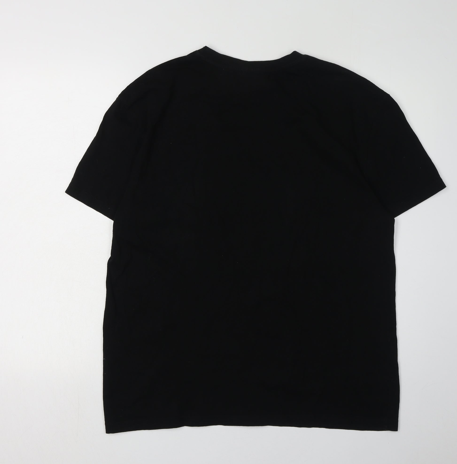 Celebrate the legacy of Wakanda with this officially licensed Marvel Black Panther T-shirt. Emblazoned with a striking graphic print that features the iconic Black Panther logo, this black crew neck T-shirt provides both style and comfort. Crafted from 100% cotton, the jersey fabric ensures breathability and softness for everyday wear. Perfect for movie enthusiasts, this regular fit T-shirt brings the essence of Marvel's cinematic universe into your casual wardrobe. Its short sleeves and comfortable crew neckline make it ideal for all seasons, whether you're layering it under a jacket or wearing it on its own during warmer days. Accentuated with a classic logo design, it's a must-have for fans of the Marvel Universe looking to showcase their admiration for the heroic Black Panther in a stylish yet subtle way. Machine washable for easy care and maintenance, this T-shirt combines practicality with fandom flair. Make it yours today and add a heroic touch to your collection.