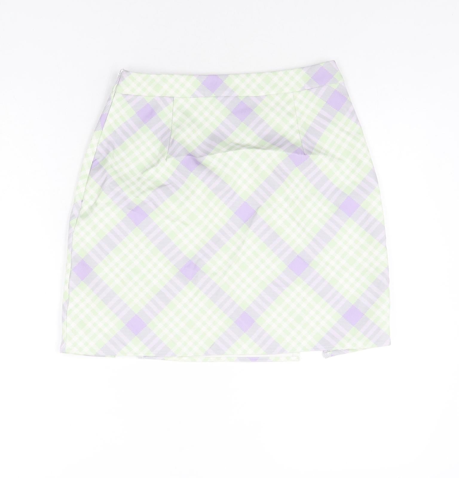 Womens Green Check Polyester Mini Skirt Size 10 Zip