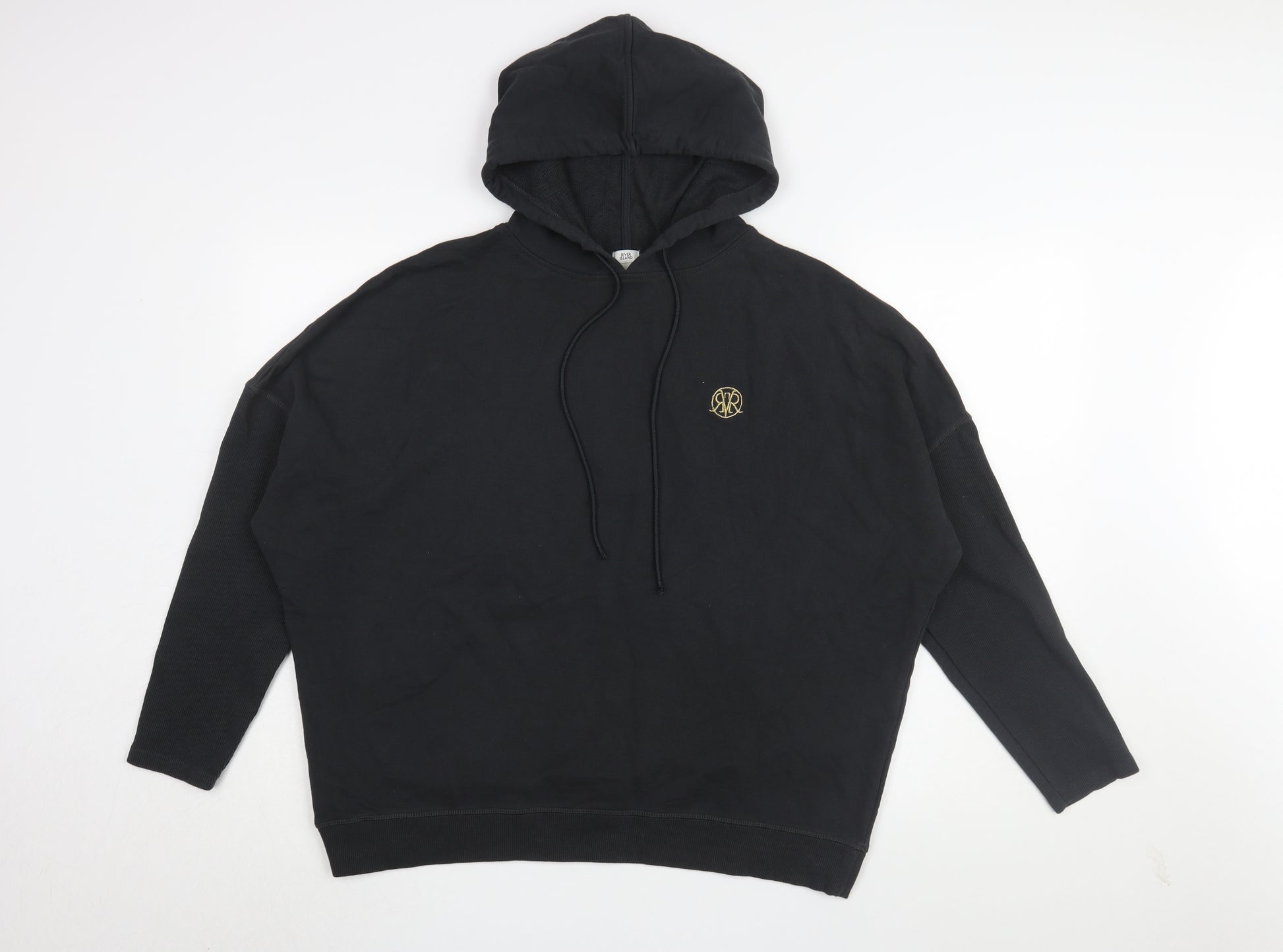 Step into casual style and comfort with this River Island Men's Black Pullover Hoodie. Crafted from premium quality cotton with a touch of elastane, this hoodie promises not only a comfortable fit but also a great feel against the skin. Its sleek black design is accentuated by a subtle logo detail, giving it a touch of elegance and branding without being overwhelming. The long sleeves and crew neck make it a versatile piece that you can pair with jeans or joggers for a laid-back look or even dress up with smart-casual outfits. Ideal for all seasons, this hoodie is designed with a hood and a convenient drawstring closure, allowing you to adjust it according to your preferences. The absence of any visible patterns keeps it simple, making it a canvas for personal style. Easy to care for, just throw it in the machine wash, and it’s good to go. Perfect for the man who values both style and practicality, this hoodie is an excellent addition to any wardrobe.