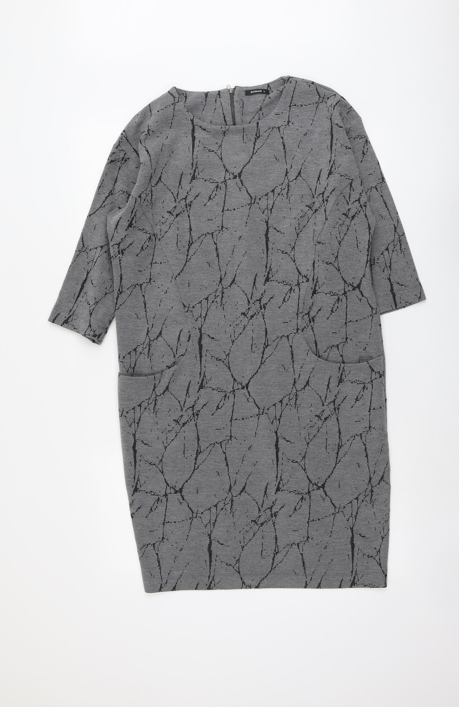 Womens Grey Geometric Polyester A-Line Size 12 Round Neck Zip