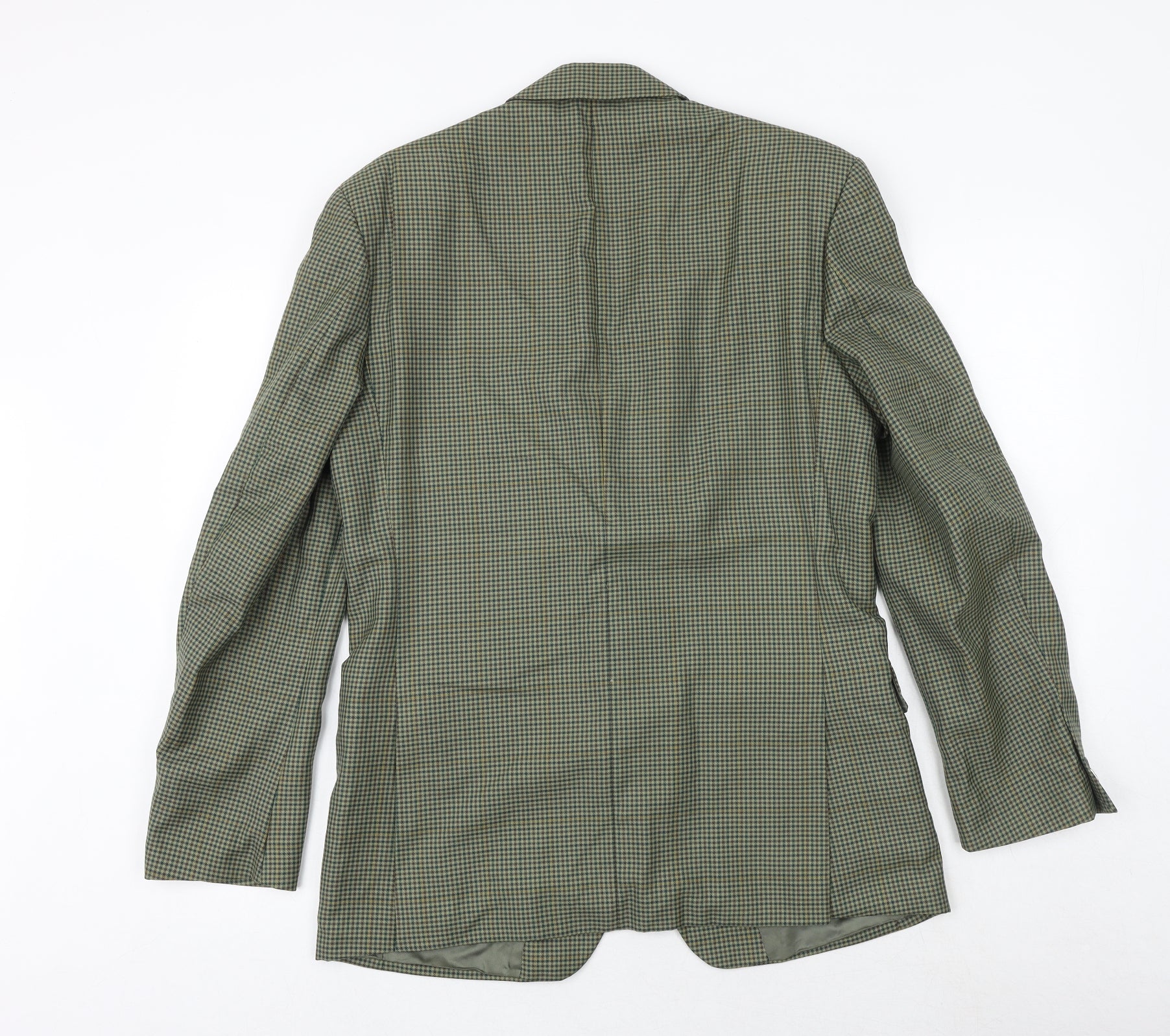 Mens Green Check Polyester Jacket Suit Jacket Size 38 Regular