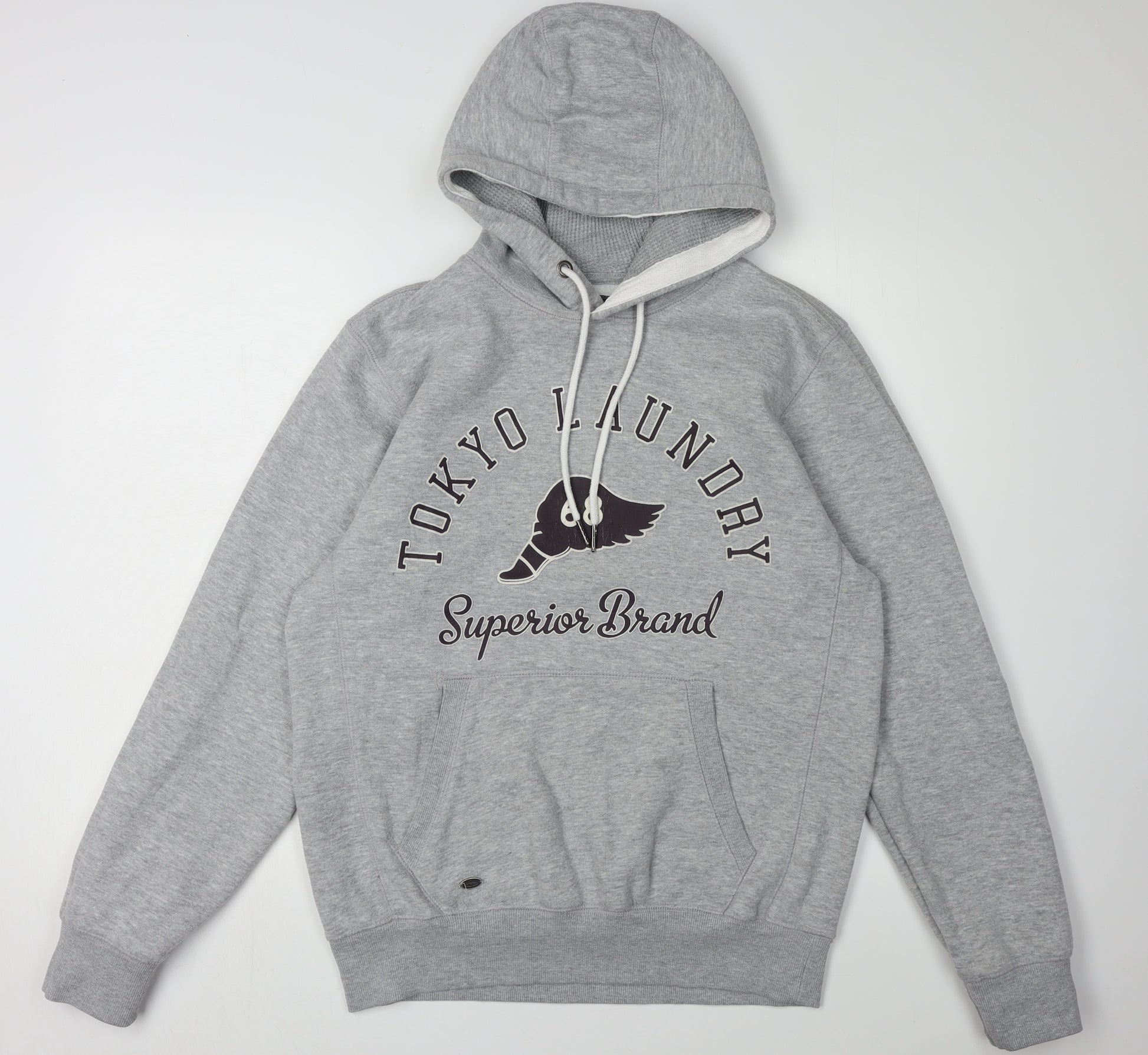 Discover exceptional comfort and style with the Tokyo Laundry Men's Grey Pullover Hoodie. Crafted from a soft blend of 53% polyester and 47% cotton, this hoodie features a regular fit with a hooded neckline, making it perfect for casual outings or lounging around at home. Its classic pullover style and convenient drawstring closure add a casual, effortless vibe to your wardrobe. The hoodie showcases a distinguished logo accent that adds a touch of sophistication without compromising on comfort. Ideal for autumn and winter, this hoodie ensures warmth while keeping you stylish with its versatile grey colour. Designed with practical elements like a hood and pockets, this piece is machine washable, offering easy garment care. Perfect for a relaxed day out, this Tokyo Laundry hoodie promises to elevate your everyday ensemble with its understated elegance and comfort.