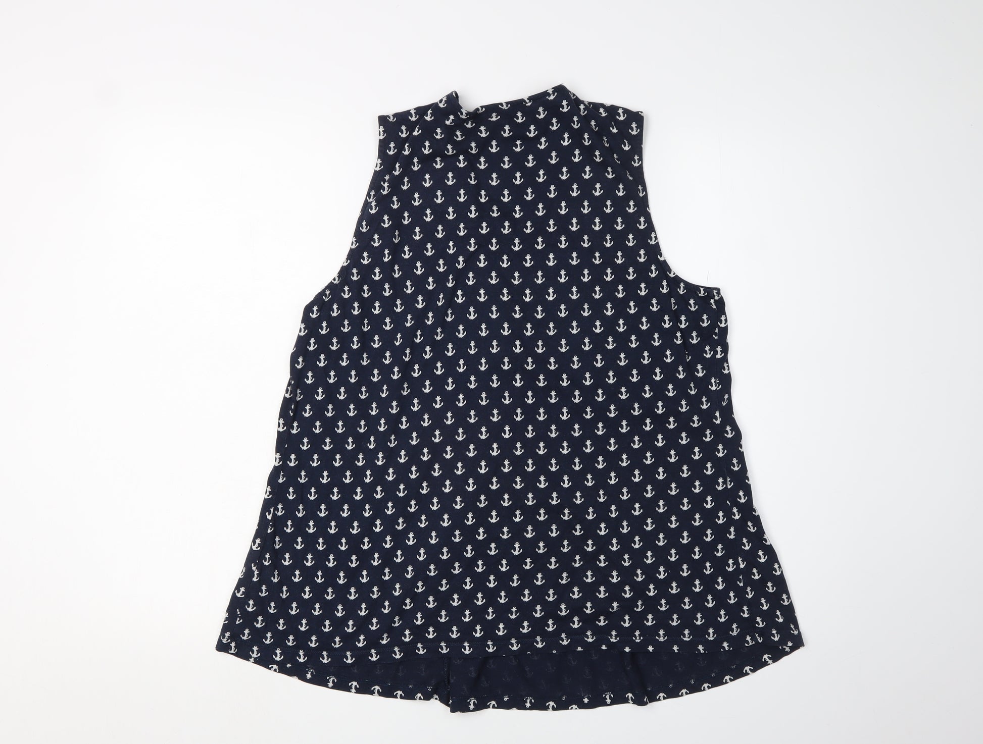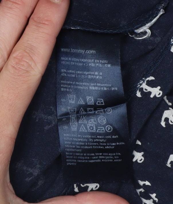 Embrace a nautical vibe with this Tommy Hilfiger women's tank top, crafted in a timeless blue hue. Accentuated with an eye-catching anchor pattern, this tank embodies casual sophistication perfect for summer. Made from a breathable cotton blend with a touch of elastane for stretch, this tank offers a comfortable fit for everyday wear. Its sleeveless design with a flattering V-neckline ensures you stay cool and stylish. Ideal for casual outings or a relaxed day at home, the pullover closure makes it easy to wear. Pair it with your favourite jeans or shorts for an effortlessly chic look. Despite being pre-owned, this piece is in excellent condition, free from any visible flaws. Achieve a laid-back style with a hint of nautical flair—perfect for those who love the sea or coastal living. This tank top, with its classic fit and jersey fabric type, ensures you are not only comfortable but also catch everyone's eye. Make it yours for just £25.00 and be ready to sail through your day with style and grace.