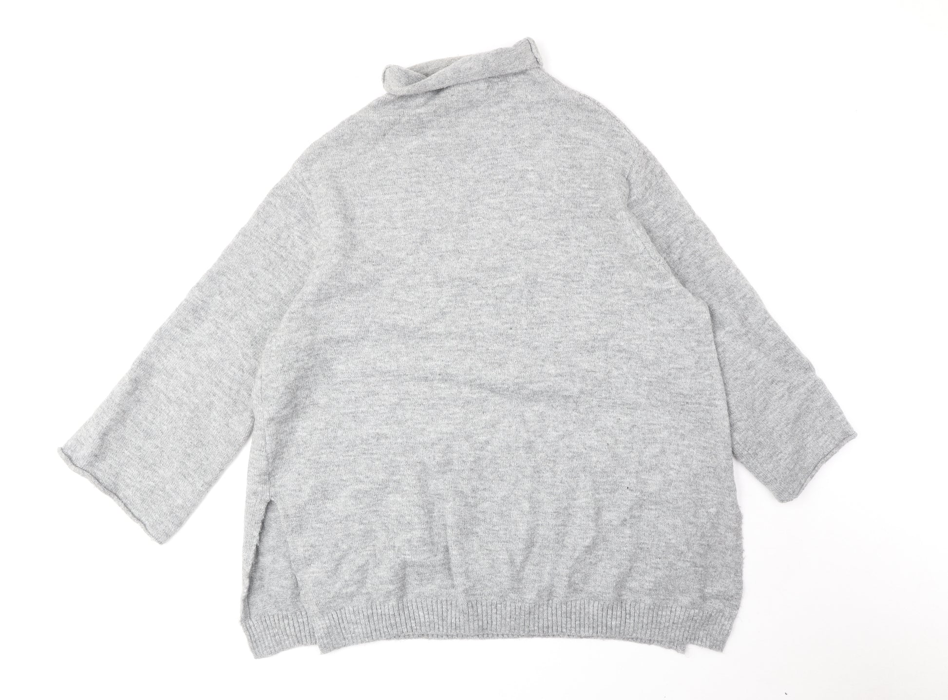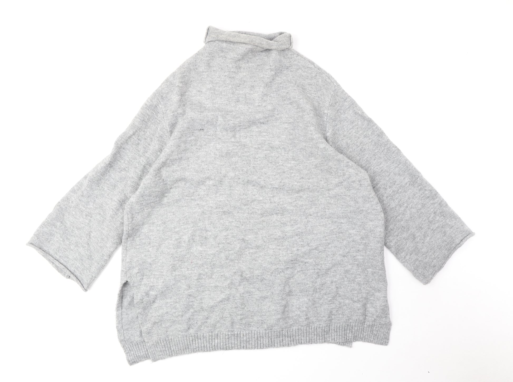 Womens Grey Roll Neck Acrylic Pullover Jumper Size M
