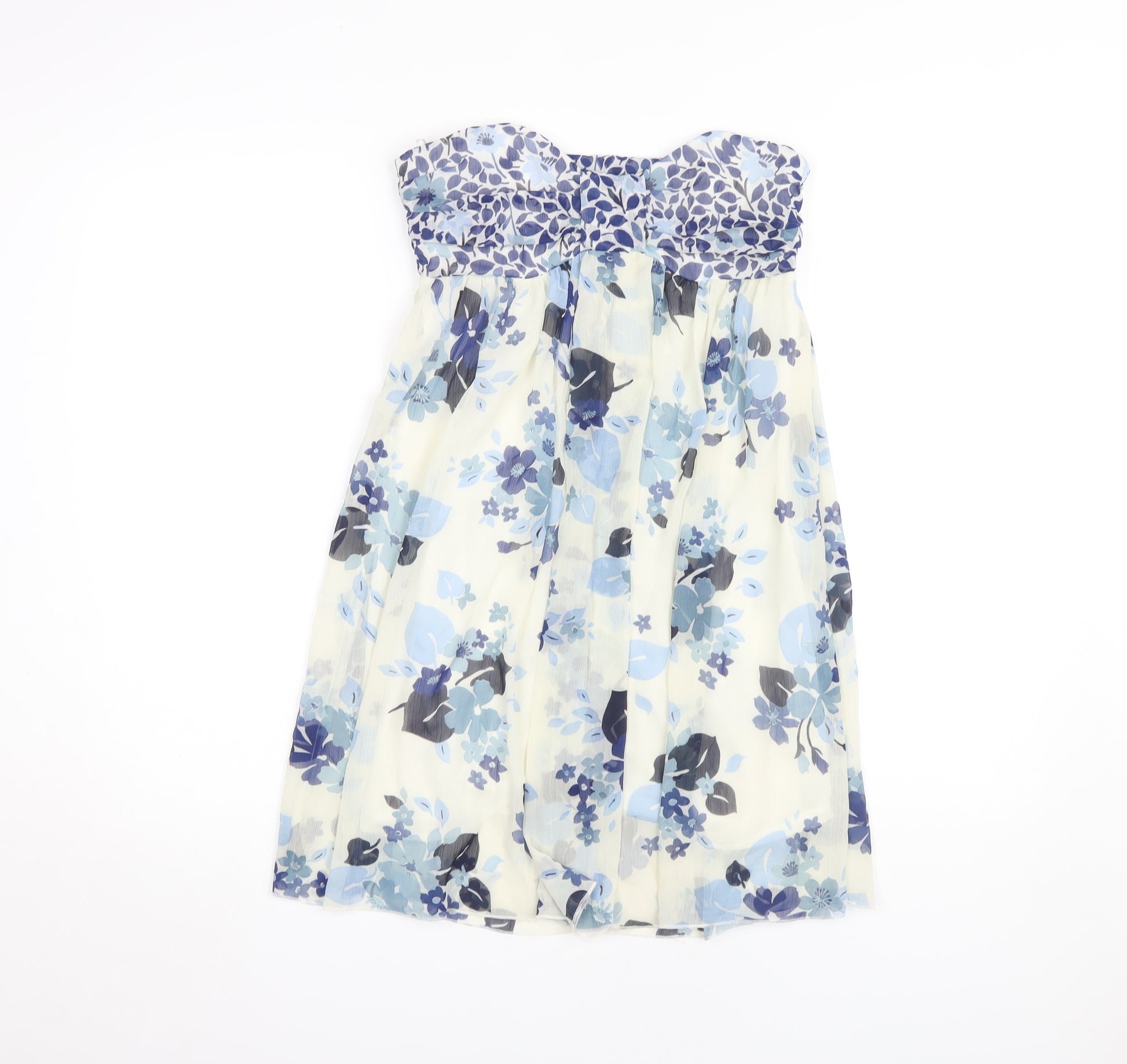 Women's Blue Floral A-Line Strapless Dress Size 10