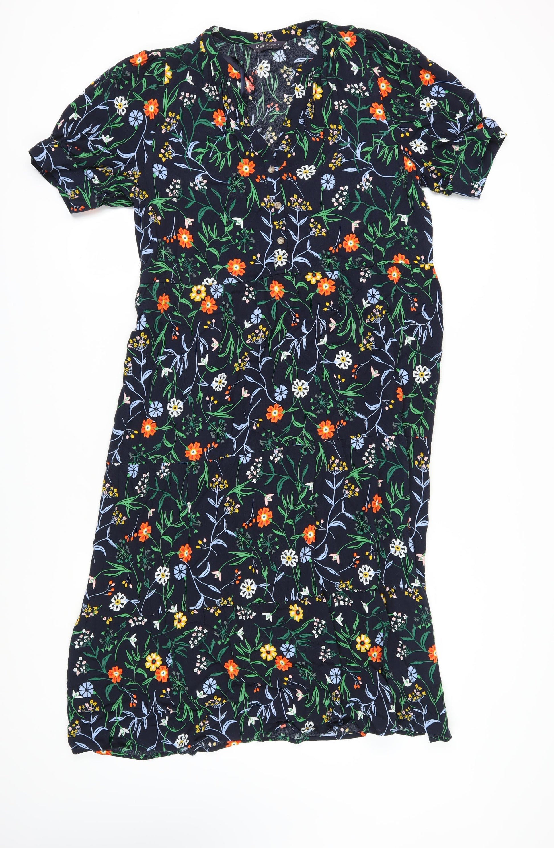 Elevate your wardrobe with this stunning Marks and Spencer Women's Midi Dress, perfect for the warmer months. Crafted from 100% viscose, this lightweight and breathable dress ensures comfort and style, making it ideal for casual outings and daytime events. The beautiful multicoloured floral pattern adds a touch of elegance and vibrancy, allowing you to stand out effortlessly.Designed with an A-Line silhouette, this dress flatters various body shapes while providing ease of movement. The V-neckline and short sleeves give it a modern, chic look that's both timeless and versatile. With its pullover closure, it offers simplicity and convenience, eliminating the need for buttons or zippers.Whether you're attending a garden party or heading out for a leisurely brunch, this dress is your go-to piece. Its regular fit and UK Size 14 specification ensures a comfortable and tailored look for women of different sizes. The midi length makes it suitable for various occasions, from casual meet-ups to more refined gatherings.Machine washable for easy care, this dress is not only stylish but also practical for everyday wear. Embrace the essence of spring and summer with its stunning floral design and enjoy the comfort of woven fabric that drapes beautifully with every step you take.Perfect for those who appreciate style and functionality, this Marks and Spencer dress promises to be a cherished addition to your wardrobe. Grab yours now and enjoy looking fabulous while feeling at ease.