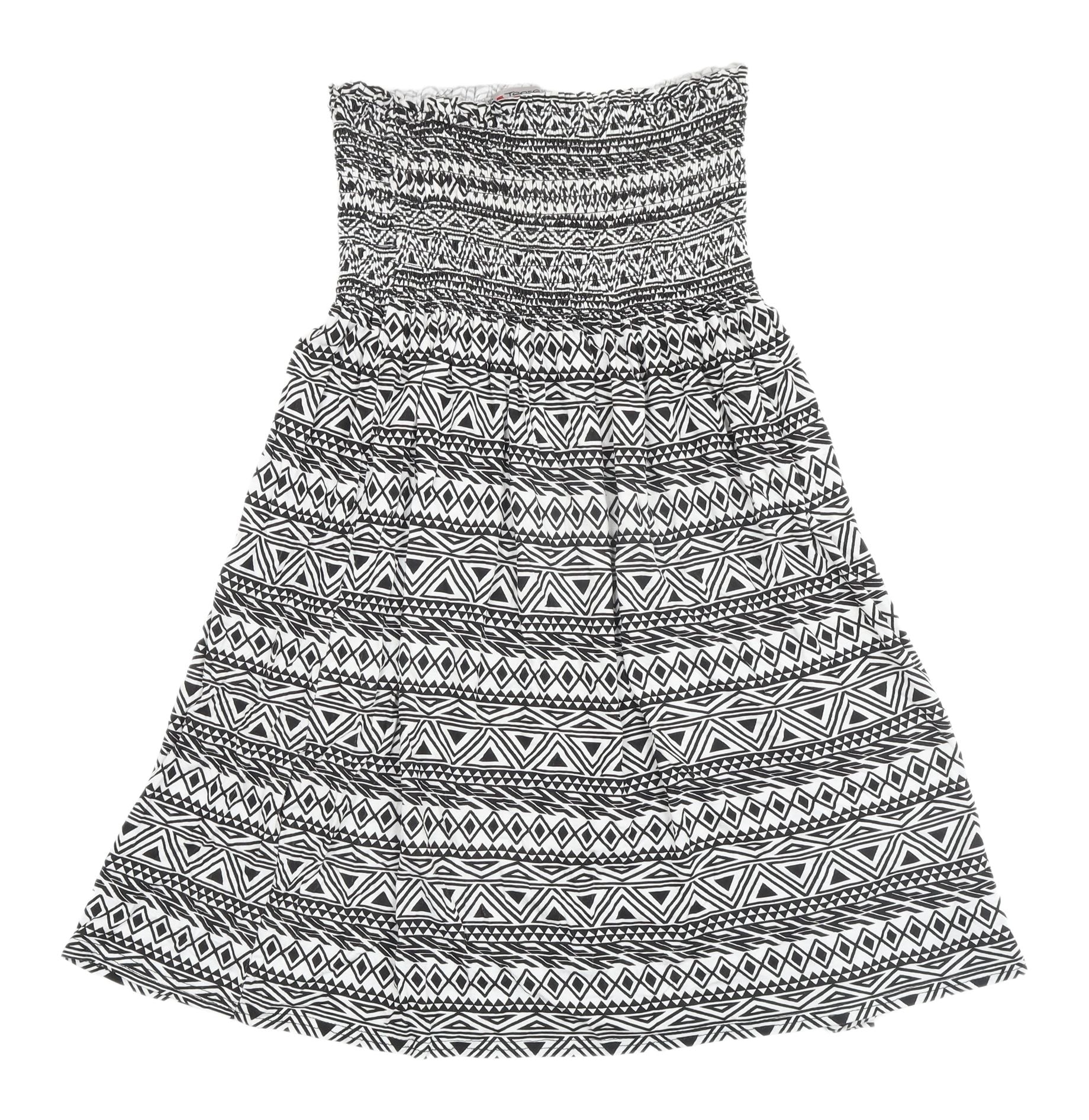 Step into summer with style and comfort with this black geometric bandeau dress by Tease. Perfect for casual outings, this dress offers a flattering fit crafted from soft jersey fabric with a touch of stretch, ensuring you stay comfortable all day long. The geometric design adds a trendy and modern twist, making it an ideal choice for those looking to make a statement without compromising on comfort. With its strapless design and lightweight material, this dress is perfect for sunny days, beach strolls, or casual meet-ups with friends. Pair it with sandals for a relaxed day out or dress it up with some accessories for an evening look. Whether you're on holiday or enjoying a laid-back weekend, this dress is a versatile addition to your wardrobe. Made effortlessly chic, it's a piece that ticks all the boxes for a carefree, stylish season.