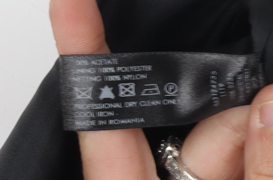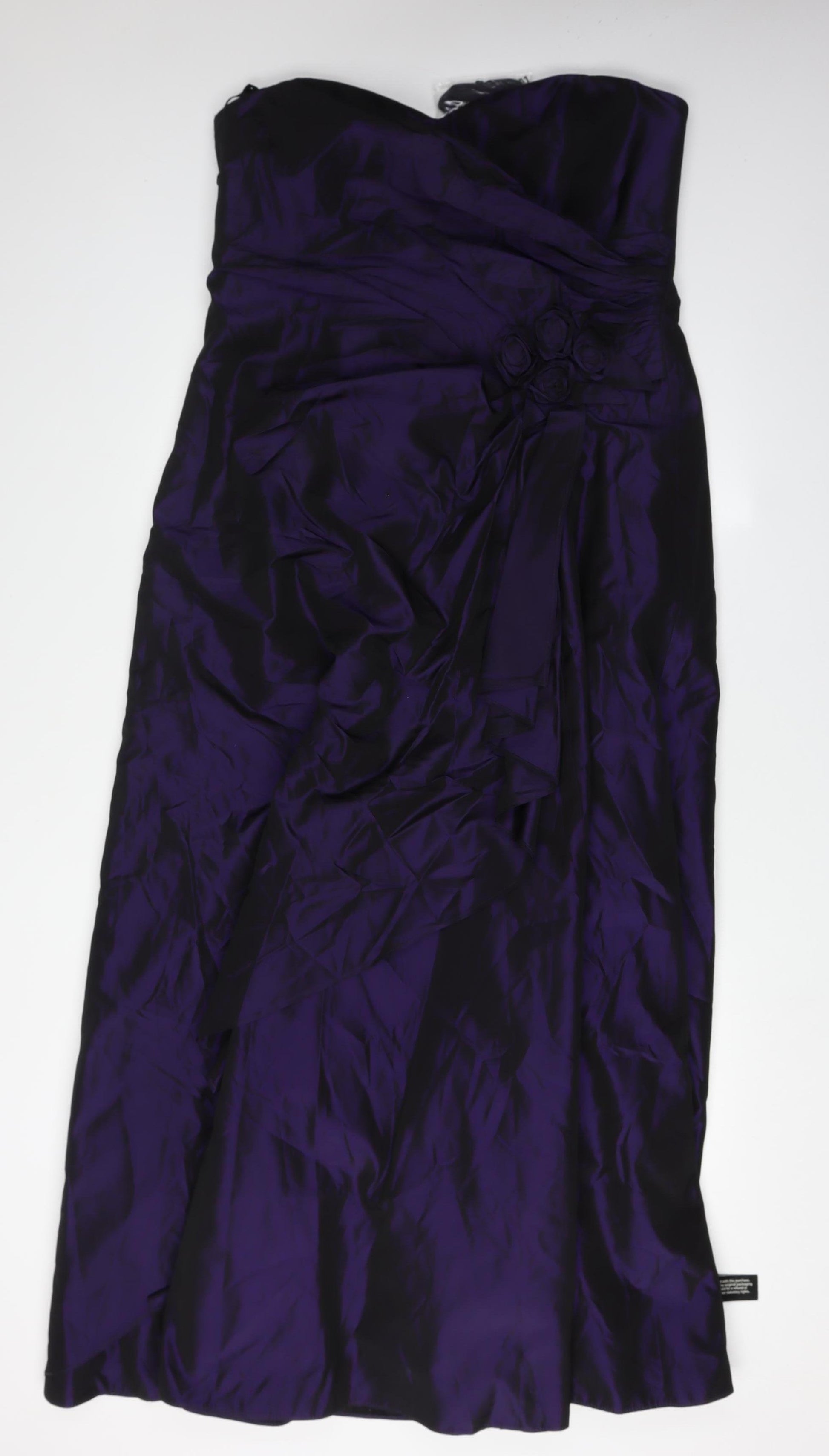 Step into elegance with this exquisite purple strapless dress from Debenhams. Designed for the modern woman, this dress is perfect for party and cocktail occasions. The rich purple hue adds a touch of luxury, while the sleek, strapless neckline exudes sophistication. Made with quality materials, this dress features an acetate main body and a comfortable polyester lining, ensuring both durability and style. Though it is sleeveless, the dress offers a flattering and structured fit that complements a variety of body types. Perfect for a night out or a special event, this dress is a must-have for your wardrobe. Please note that the garment is in excellent condition, albeit with slight wrinkles present. It is recommended to dry clean only. Experience the allure of Debenhams and make a statement wherever you go with this timeless piece.