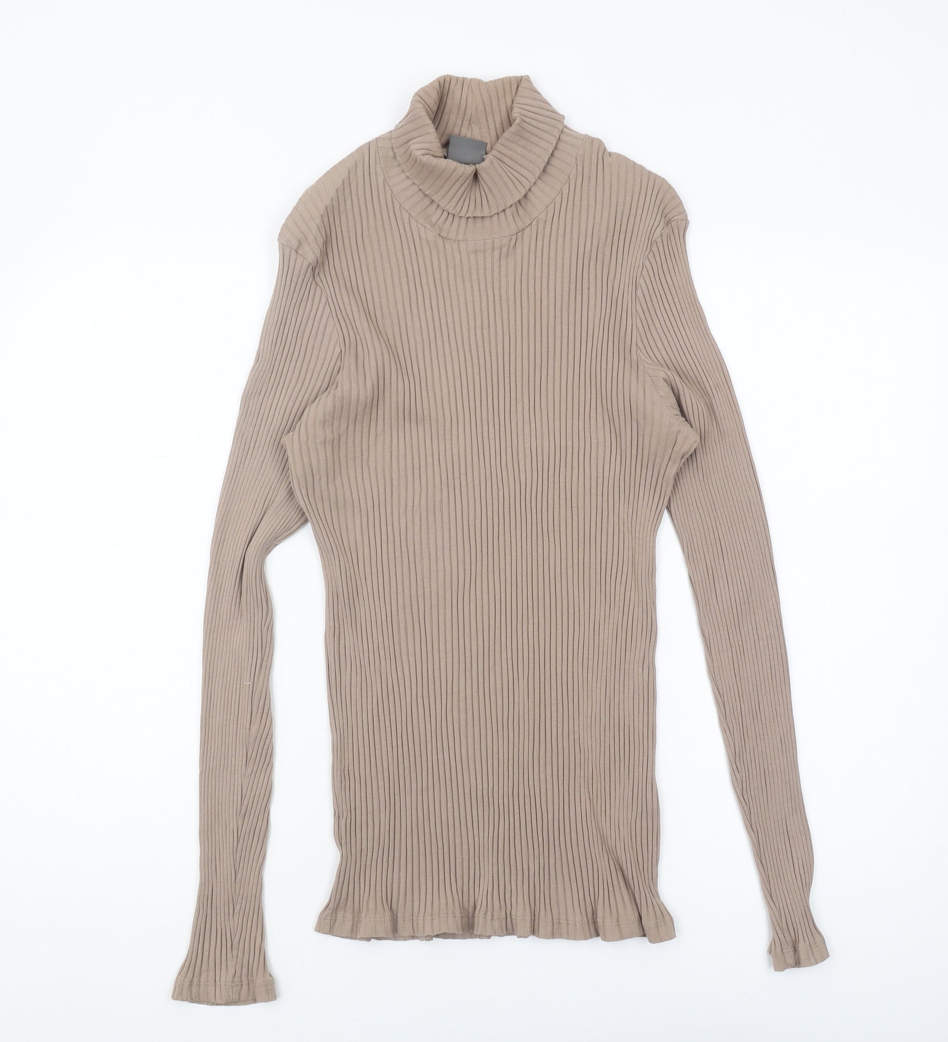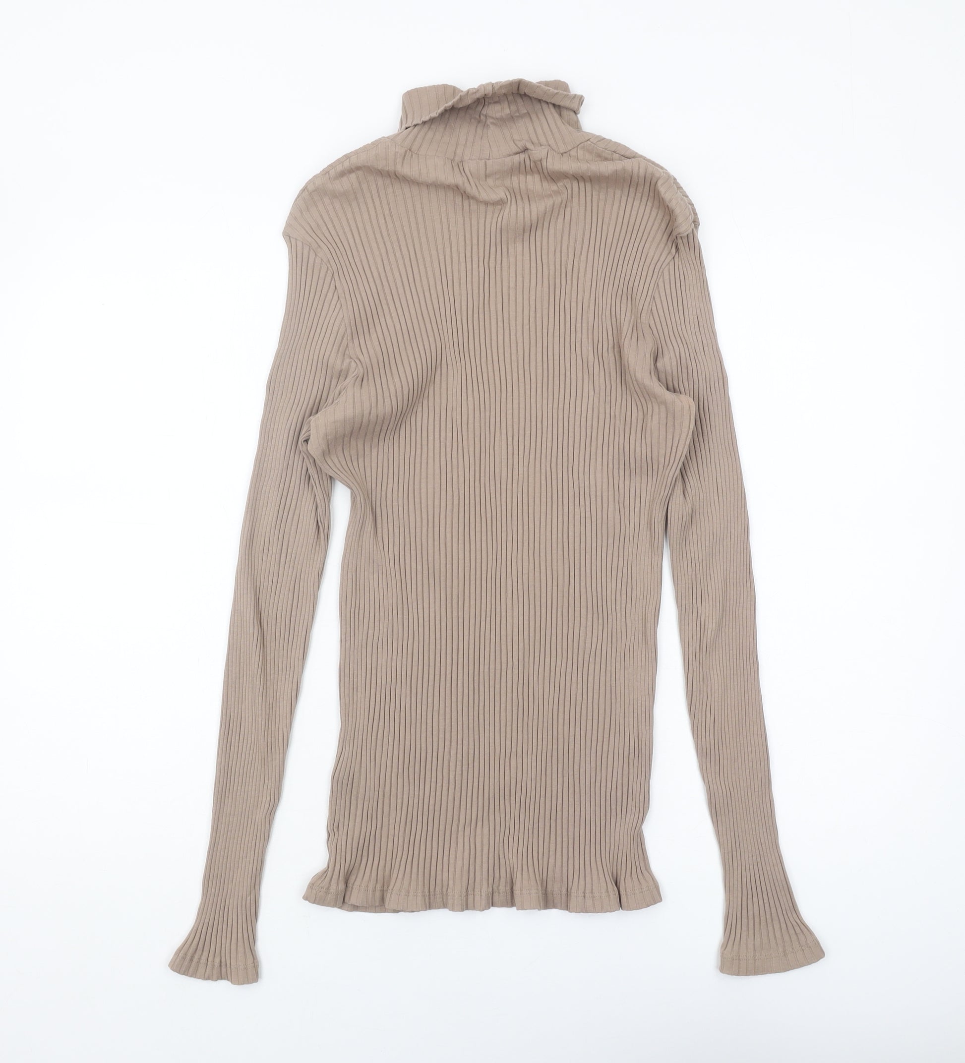 Introducing the ASOS Women's Beige High Neck Knit Blouse, an essential addition to your autumn and winter wardrobe. Crafted from 100% cotton, this basic style blouse offers premium comfort and breathability, making it a perfect choice for casual outings. The blouse features a fashionable high neck that adds a touch of sophistication, while its long sleeves provide essential coverage during cooler seasons. Designed in a solid beige hue, it is versatile enough to pair with a variety of outfits. The pullover closure ensures ease of wear, and the regular fit offers a flattering silhouette suitable for various body types. Made with care, this machine washable knit fabric promises durability and easy maintenance. Whether you're heading out for a casual lunch with friends or enjoying a day out, this ASOS blouse offers an effortless blend of style and comfort. Don't miss out on adding this must-have piece to your collection.