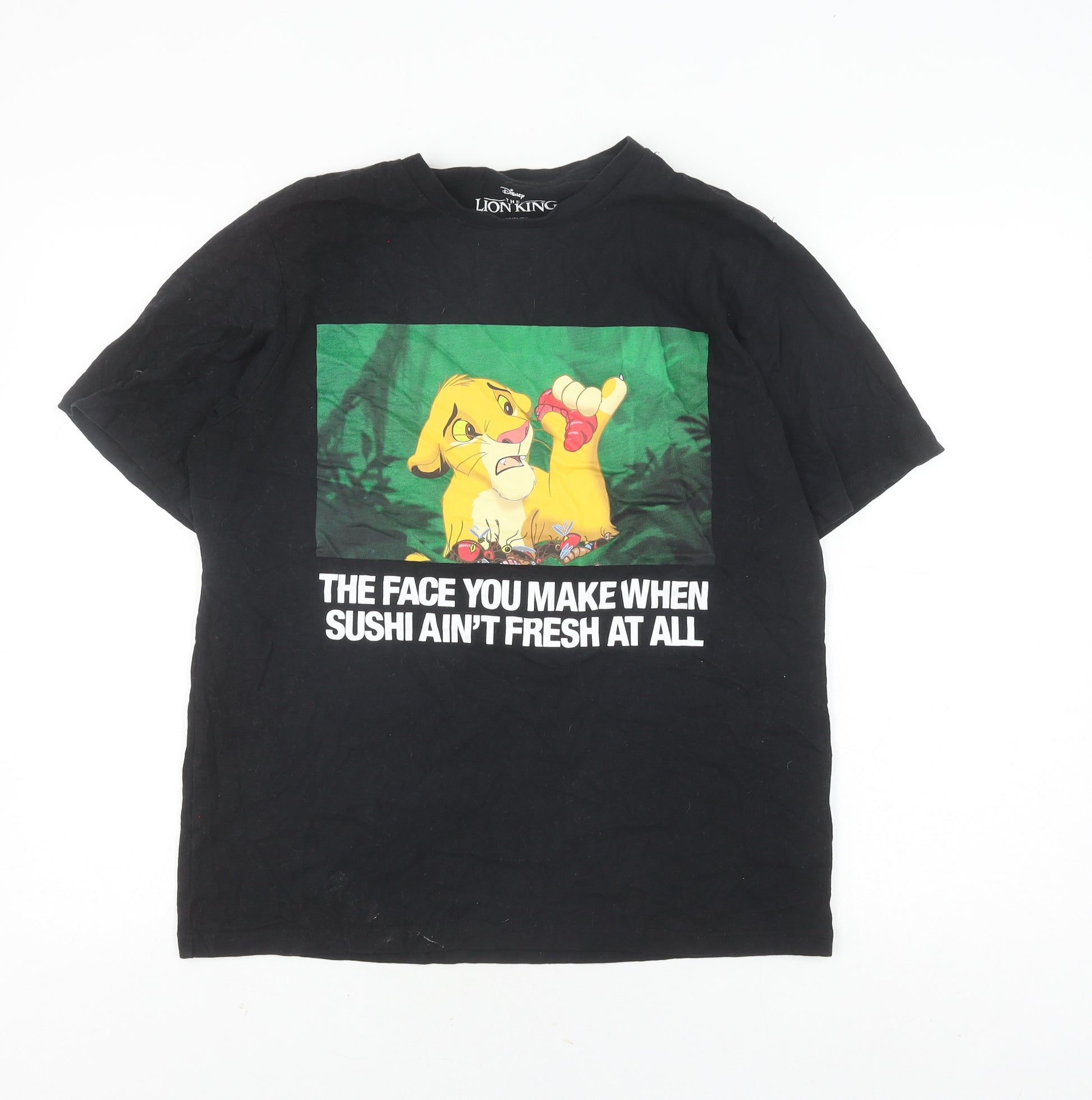 Dive into casual comfort with this Pull&Bear black T-shirt, ideal for both men and women who appreciate a touch of humour in their style. Crafted from 100% cotton, this jersey fabric shirt promises a soft and breathable fit, making it perfect for all seasons. Featuring a classic crew neck and regular fit, it ensures ease of wear alongside its fun cartoon theme inspired by The Lion King. This short-sleeve T-shirt is all about laid-back vibes with a dash of nostalgia, thanks to its playful graphic on the front. Despite its slightly worn appearance, the quality and charm are unmistakable, offering versatility in everyday casual settings. Whether paired with jeans for a day out or shorts for a relaxed day indoors, this T-shirt is a staple for any wardrobe looking for comfort and a bit of character. Easy to care for, it's machine washable, ensuring you can wear it time and again without fuss. Make a statement with a piece that combines fun, comfort, and style effortlessly.