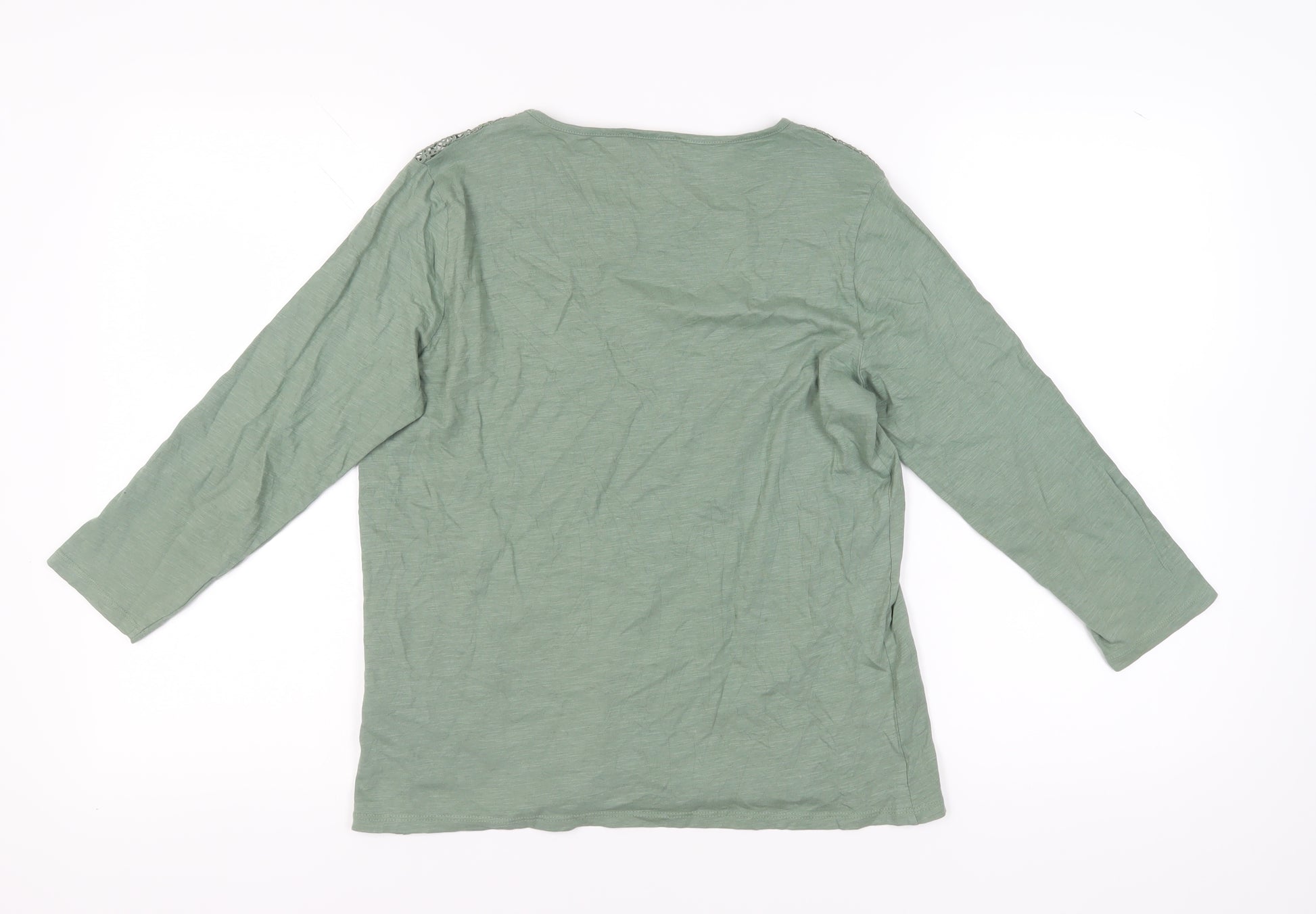 Enhance your wardrobe with this elegant Afibel women's blouse in a soothing green hue, perfect for adding a touch of sophistication to your everyday look. Tailored in a regular fit with a round neckline, this blouse promises comfort and style. The intricate crochet accents along the neckline lend a unique charm, making it suitable for casual occasions while maintaining a chic appearance. The 3/4 sleeves provide just the right amount of coverage, making this blouse ideal for transitioning through spring, summer, and autumn. Crafted from premium 100% cotton with polyester additions, it ensures breathability and durability, allowing for all-day comfort. The solid pattern is versatile, making it easy to pair with your favourite bottoms. Machine washable for easy care, this blouse is designed for women who appreciate both style and convenience. Whether you’re dressing for a casual day out or a relaxed social gathering, this blouse is a fantastic choice that doesn't compromise on style. Experience the blend of elegance and comfort with Afibel's exquisite craftsmanship.