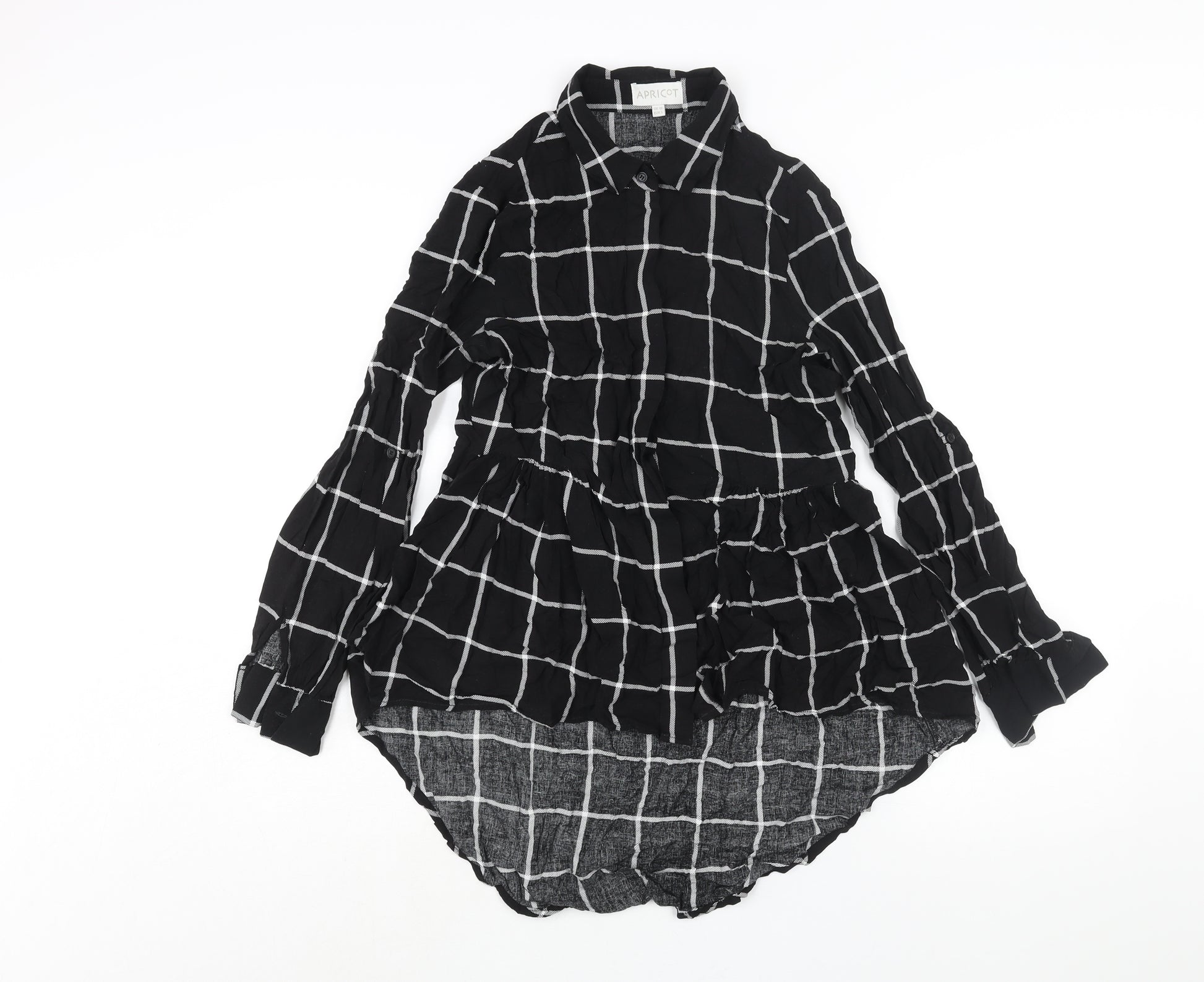 Womens Black Check Viscose Basic Blouse Size 10 Collared - Hi-Low