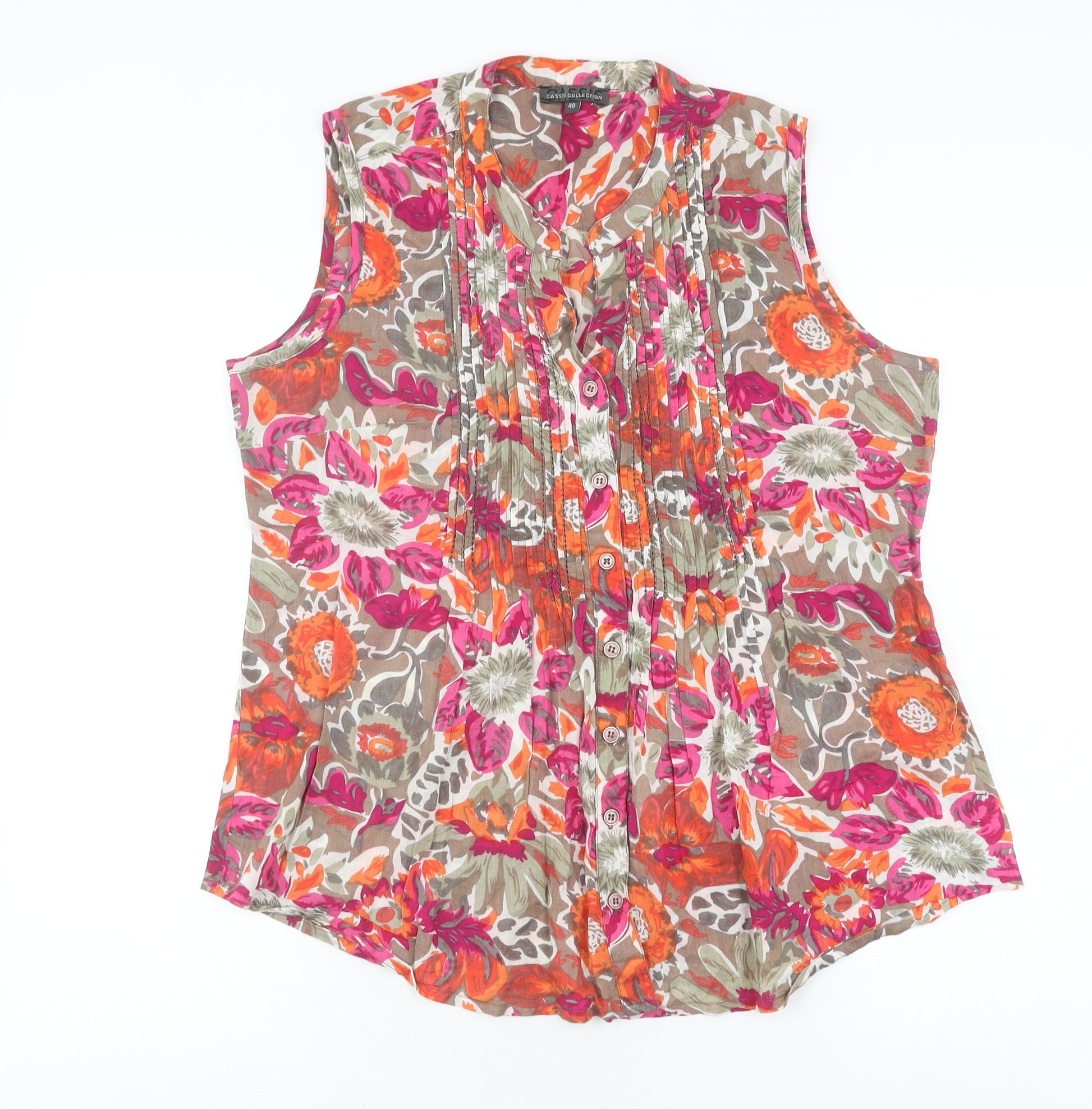 Embrace the vibrant beauty of spring and summer with the Cassis Collection multicoloured floral blouse. Designed with a sleeveless silhouette and crafted from a breathable cotton and elastane blend, this blouse offers the ideal combination of comfort and style. With a flattering V-neckline and button accents, it's perfect for casual outings or laid-back evenings. The regular fit cinches your figure just right, ensuring that you look effortlessly chic. Whether worn over jeans or paired with a summer skirt, the floral pattern adds a touch of nature’s grace to any ensemble. Enjoy easy maintenance with its machine washable feature, making it both practical and fashionable. Make this blouse a staple in your wardrobe and stand out with its playful floral theme.