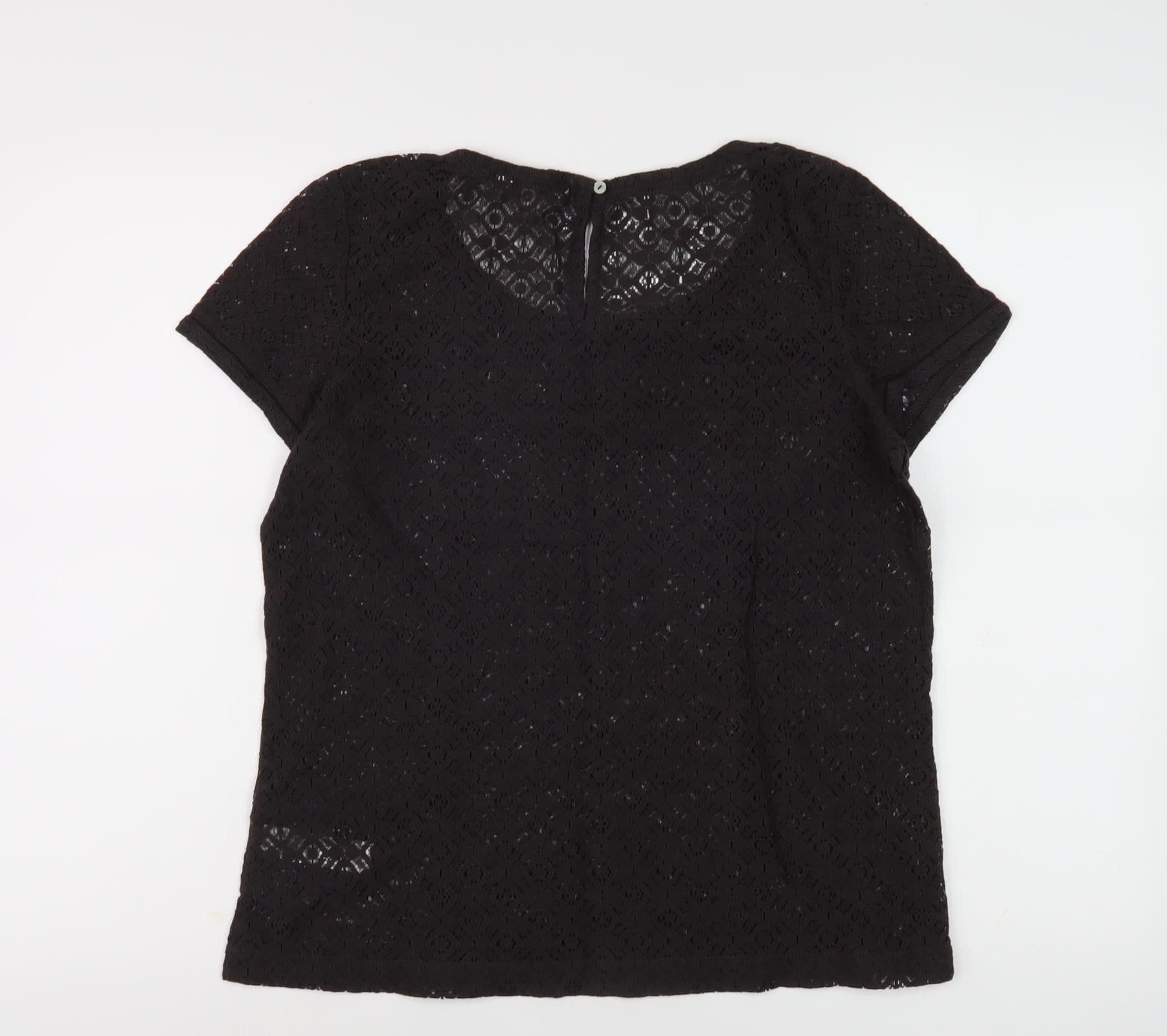 Step out in style with this charming Fat Face women's top in a classic black shade, tailored for an elegant appearance. Designed with short sleeves and crafted from delicate lace, it combines both comfort and sophistication seamlessly. The top is made entirely of cotton, promising a breathable and soft feel against your skin. Its solid black color and exquisite lace fabric create a versatile piece that you can dress up or down for any occasion. Whether you're aiming for a casual outing or a more polished look, this lace top fits the bill perfectly. In excellent condition with no visible signs of wear, this top is a worthy addition to your wardrobe. Don't miss out on this stylish piece that's both practical and trendy.