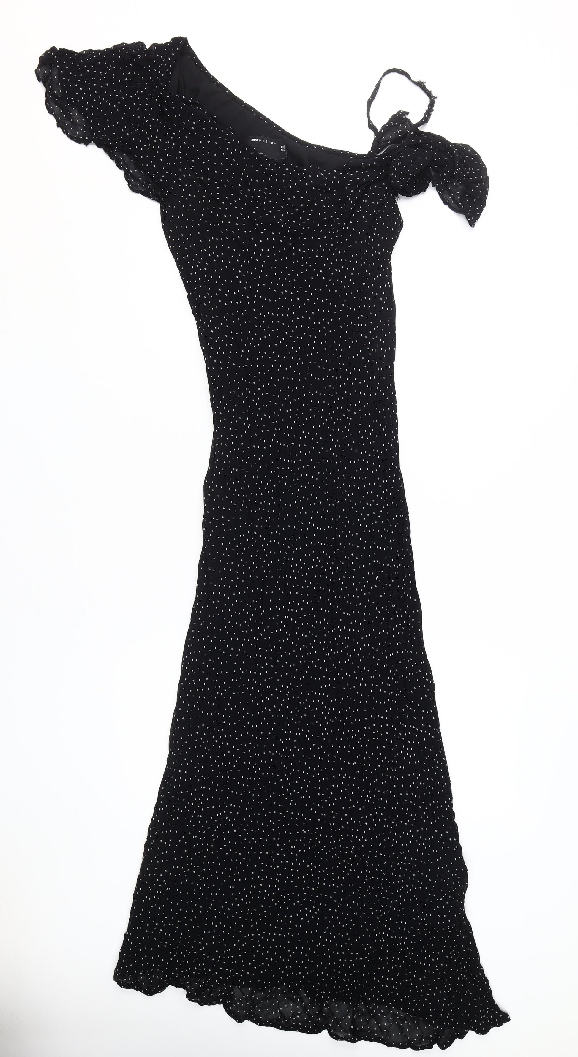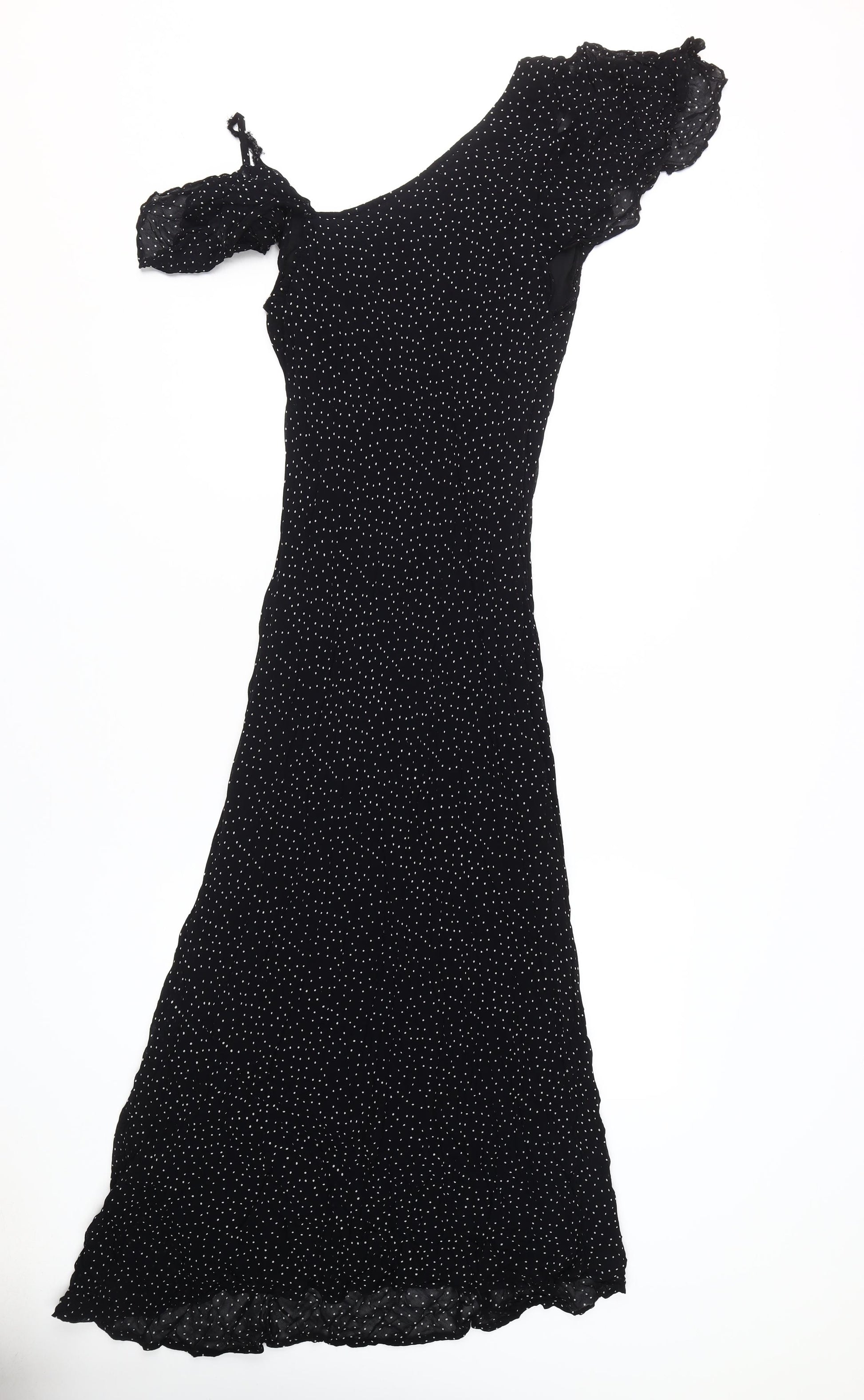 Women's Black Polka Dot Bodycon Midi Dress Size 14