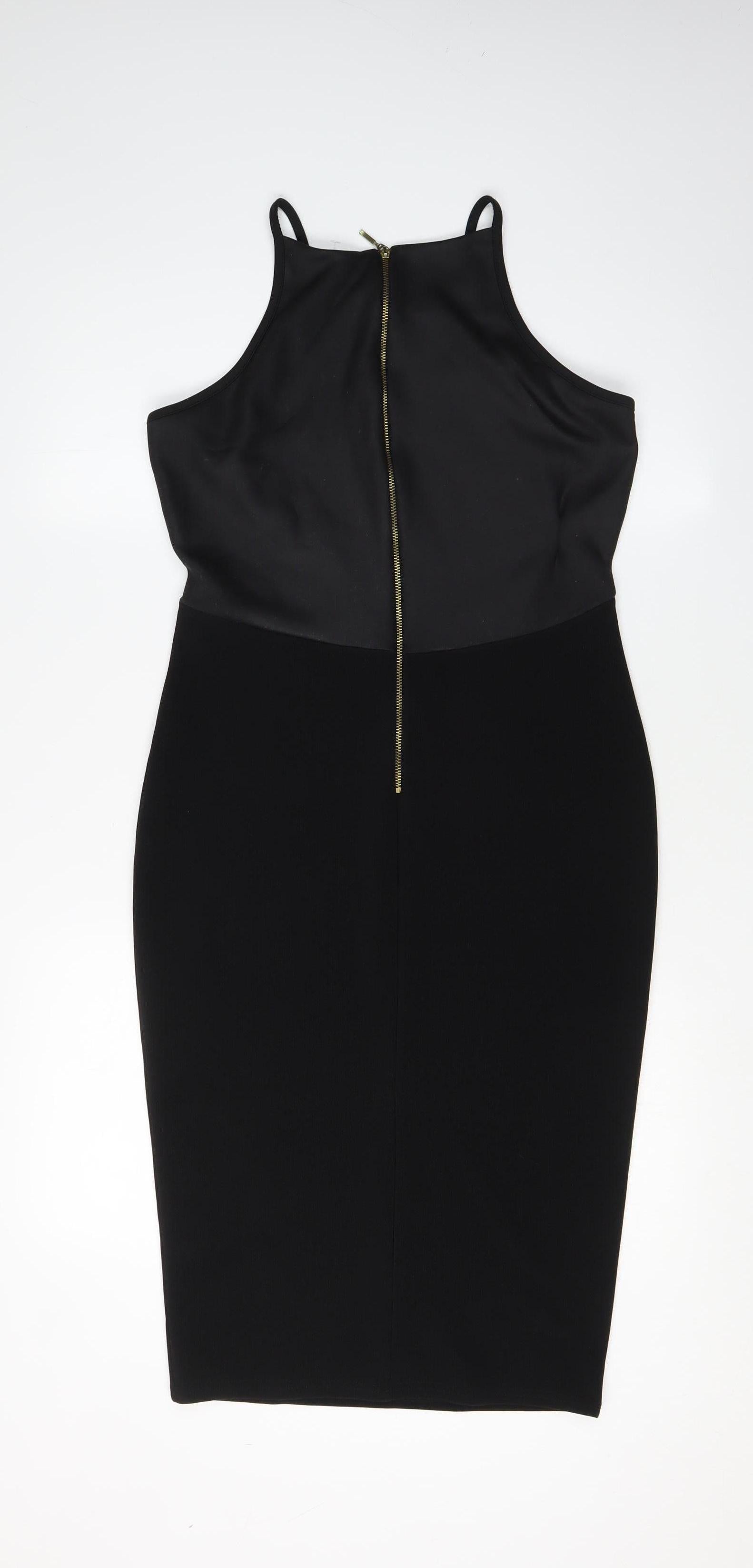 Elevate your wardrobe with this stunning bodycon midi dress from River Island. Perfect for parties and cocktail events, this elegant black dress is a must-have for any fashion-forward woman. Crafted from a luxurious jersey fabric, it provides a flattering, figure-hugging fit that accentuates your curves in all the right places. The sleeveless design with strappy sleeves and a stylish scoop neckline exudes sophistication and modern charm. Ideal for all seasons, this dress adds a touch of class to your ensemble, ensuring you stand out on any special occasion. Invest in this timeless piece and enjoy its versatile style that seamlessly coordinates with your favourite accessories.