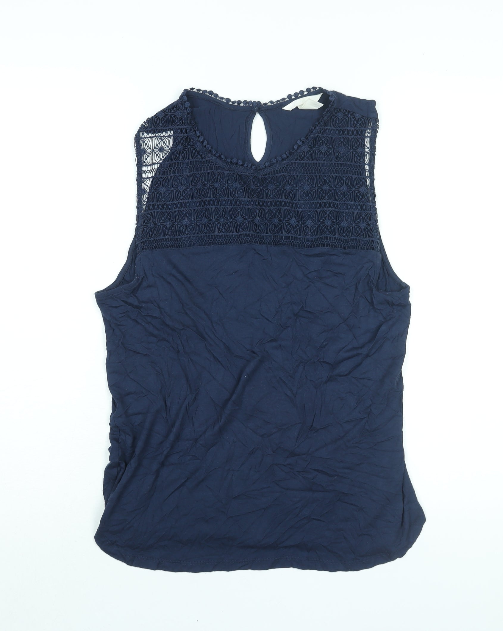 Womens Blue Viscose Camisole Blouse Size L Round Neck - Lace Detail
