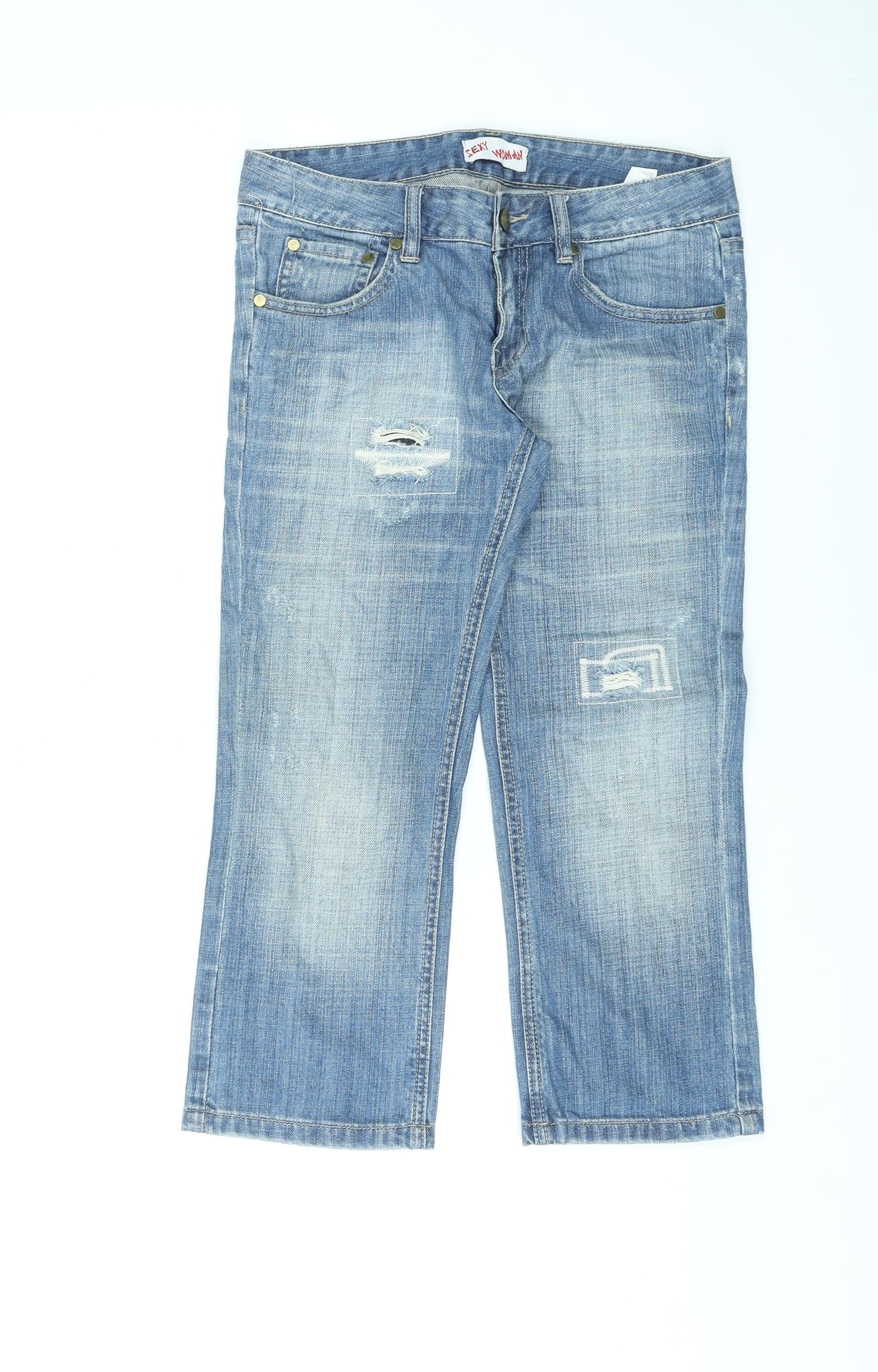 Womens Blue Cotton Capri Jeans Size 6 L21 in Regular Zip - Cropped