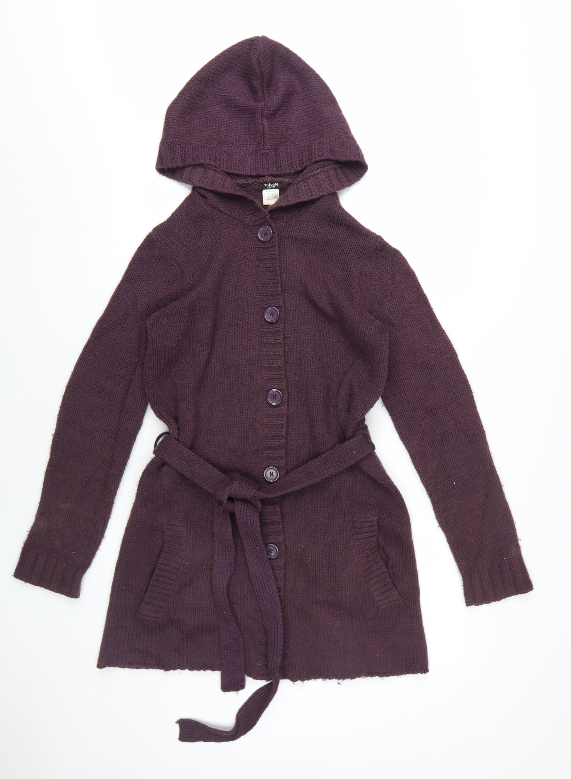 Step into comfort and style with this La Redoute Creation Women's Cardigan. Designed to offer a relaxed fit, it's perfect for casual outings in the Autumn and Winter months. The cardigan is crafted from 100% Acrylic, providing warmth while remaining lightweight and easy to care for. It features a chunky-knit fabric that adds texture and depth, making it an excellent addition to your wardrobe.This stylish cardigan comes in a soothing shade of purple, complemented by its belted design that accentuates your silhouette. The hooded feature adds a layer of functionality, offering extra warmth for those chilly days. With long sleeves and a knee-length cut, it ensures total coverage, keeping you snug all day.The cardigan also includes button accents on the front, giving it a classic yet modern look. Its machine-washable nature makes it easy to maintain, allowing you to keep it looking fresh with minimal effort.Though pre-owned, it is in excellent condition with no visible defects, offering you quality and style at a fraction of the original price. This is a versatile piece that pairs wonderfully with leggings or jeans, ideal for a day out shopping or a casual meet-up with friends. Elevate your wardrobe effortlessly with this charming La Redoute cardigan.