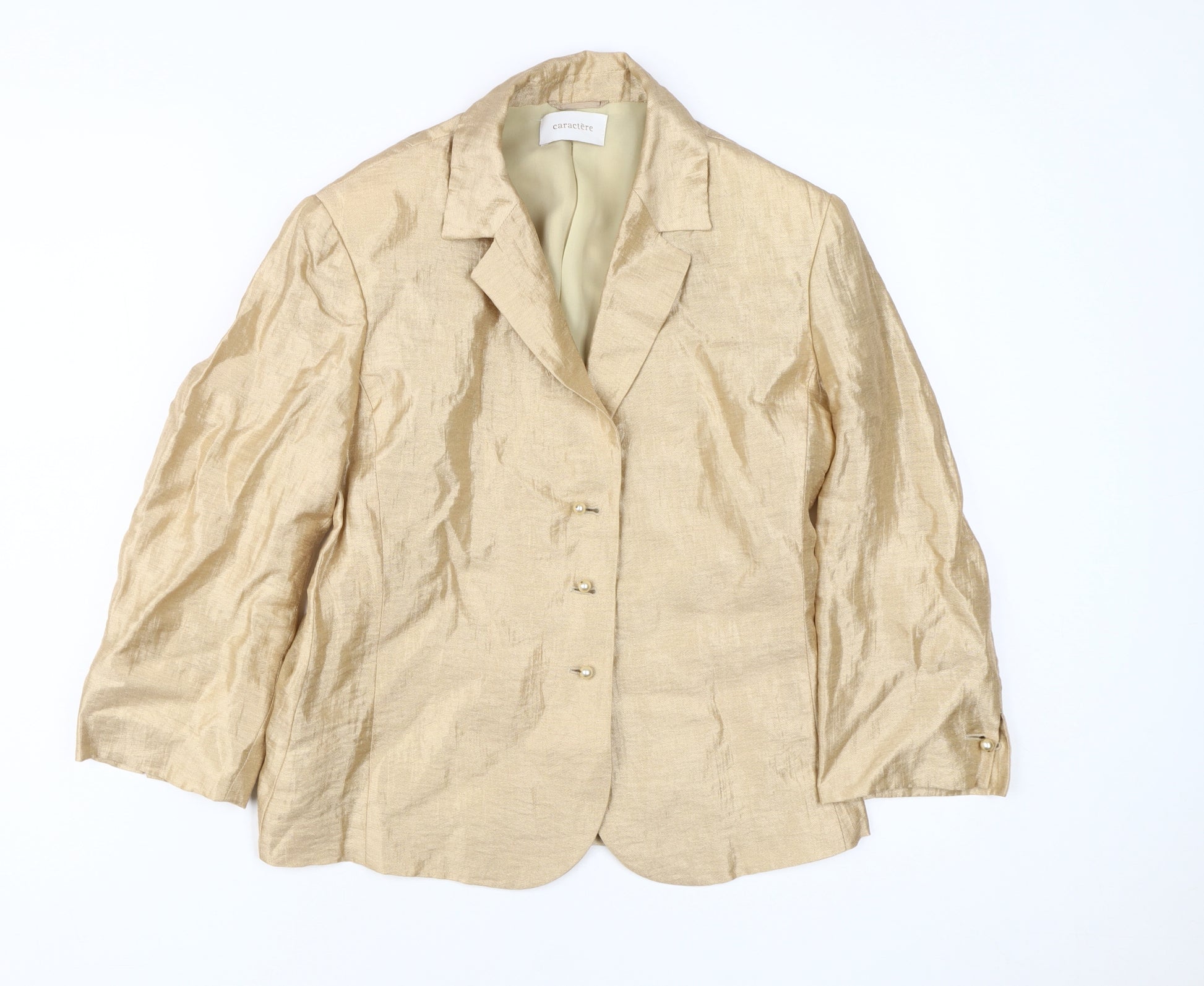 Enhance your executive wardrobe with this sophisticated beige blazer from Caractère, crafted for the discerning woman with a keen eye for style and quality. This blazer, a quintessential piece for both business and casual settings, is made predominantly from luxurious linen (58%) with a comfortable hint of nylon (41%), ensuring both breathability and structural integrity. Tailored to a UK size 12, this piece provides a flattering fit for the regular-sized woman, comfortably moulding to your silhouette. Its smooth polyester lining enhances comfort, offering a seamless wear experience against your skin. The elegant button accent closure adds a chic touch, ensuring functionality meets fashion in an understated, sophisticated manner. Ideal for spring and summer, this blazer’s lightweight fabric ensures you’ll stay cool and composed regardless of the occasion. Whether you’re heading to the office or enjoying a casual meeting, the blazer's beige tone perfectly complements any palette or ensemble. Despite some minor creasing, this piece remains in excellent condition, promising style with every wear. Designed for the modern woman who appreciates classic elegance with a contemporary twist, this piece is a true wardrobe staple. Elevate your style quotient with this Caractère blazer—perfectly marrying form and function for a versatile addition to your collection. Invest in timeless elegance and let this blazer be your go-to piece for adding a touch of sophistication to your fashion repertoire.